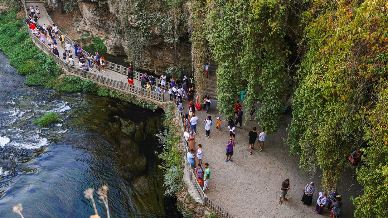 "Cennetten bir köşe" olarak da nitelendirilen Düden Şelalesi, mağarası, gümbür gümbür akan suyu ve daha birbirinden değişik görsel güzellikleriyle cazibe merkezleri arasında yer alıyor.