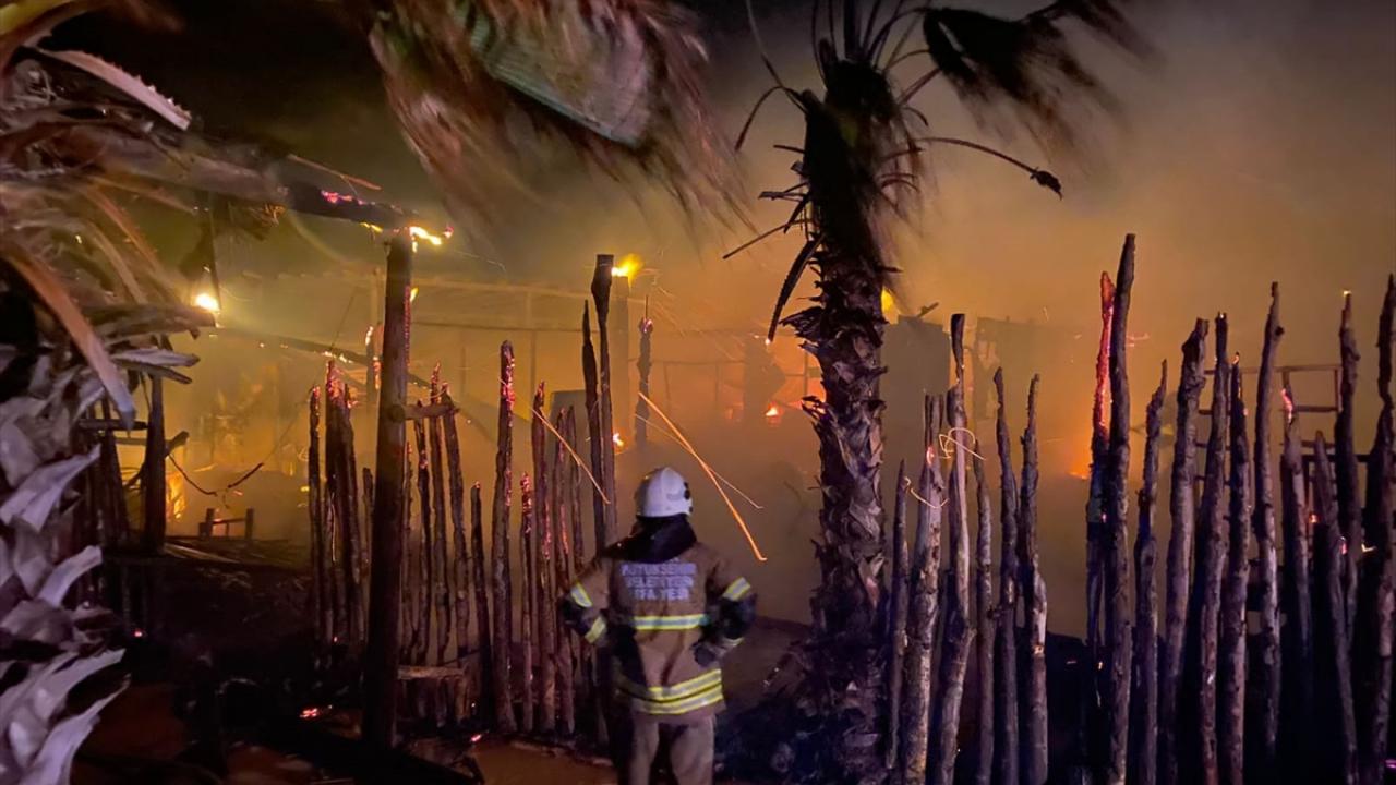 Alevler şezlong, hasır şemsiye ve plastik sehpaların bulunduğu alana sıçradı.