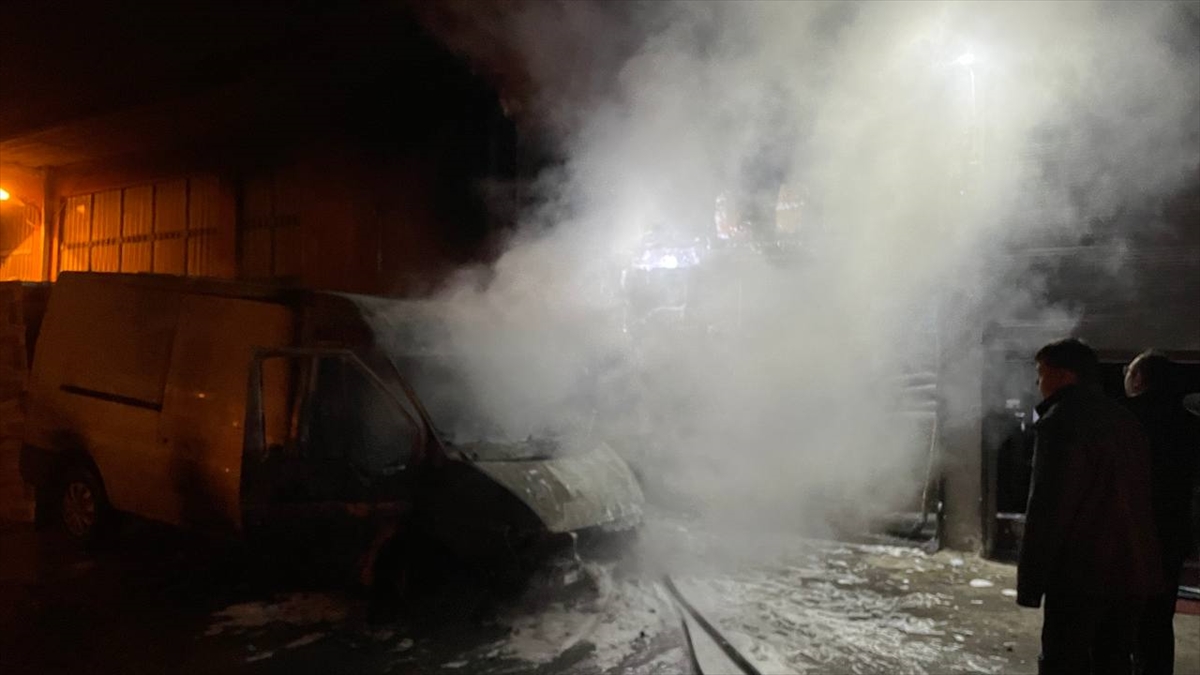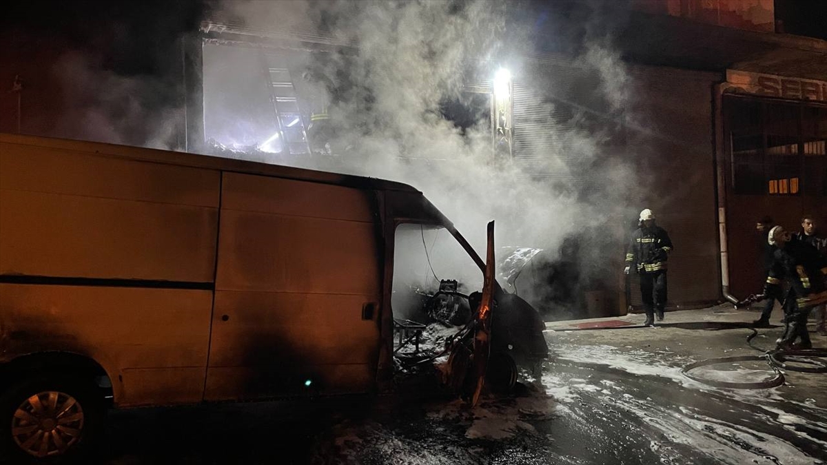 İtfaiye ekipleri kısa sürede minibüsteki ve iş yerindeki alevlere müdahale ederek yangını söndürdü.