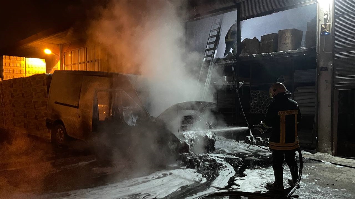 Kayseri`nin Kocasinan ilçesinde park halindeki minibüste çıkan yangın inşaat malzemesi satan iş yerine sıçradı.