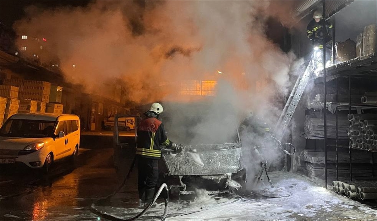 Kısa sürede aracı saran alevler, önünde park halinde bulunduğu inşaat malzemesi satan iş yerine sıçradı.