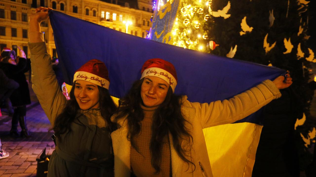 Ukrayna’nın başkenti Kiev’de vatandaşlar, yeni yılı kutlamak için bir araya geldi.