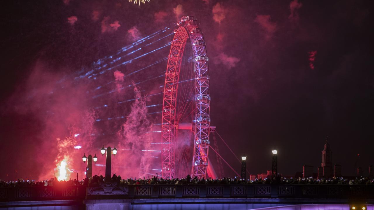 İngiltere`nin başkenti Londra`da yeni yıl dolayısıyla, `London Eye` (Londra`nın Gözü) çevresinde havai fişek gösterisi düzenlendi.
