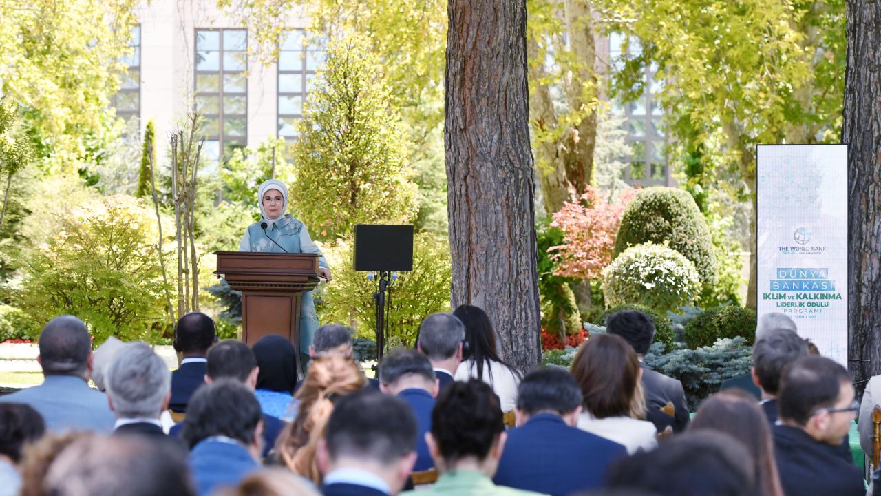 Dünya Bankası Türkiye Direktörü Auguste Tano Kouame ise Emine Erdoğan`ın desteğiyle Türkiye`nin artık ekonomik büyüme ve sosyal refah için ulusal stratejisinin merkezine iklim eylemini yerleştirdiğini belirterek, "İklim değişikliği konusundaki liderliğiniz, Türk insanının gelecek nesillerine tohum ekiyor ve dünya çapında da örnek oluyor" dedi.