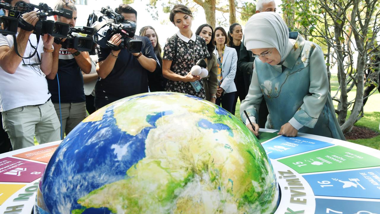 Emine Erdoğan, "İklim değişikliğiyle mücadelede, küresel olarak kritik bir eşikteyiz. Türkiye olarak bu krize, dünyanın ortak evimiz olması şuuruyla yaklaşıyoruz" diye konuştu.