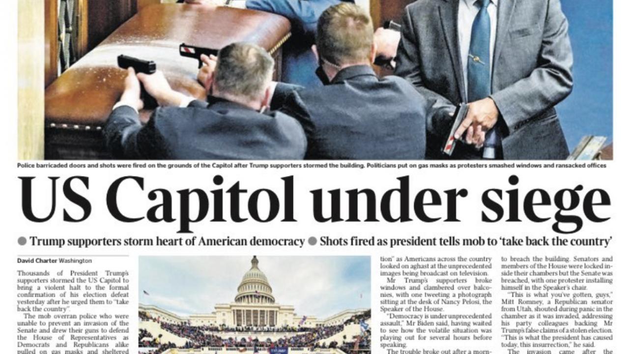 Times gazetesi de demokrasinin kuşatma altına alındığını söyleyerek, binlerce Trump destekçisinin şiddeti yükselttiğini söyledi.