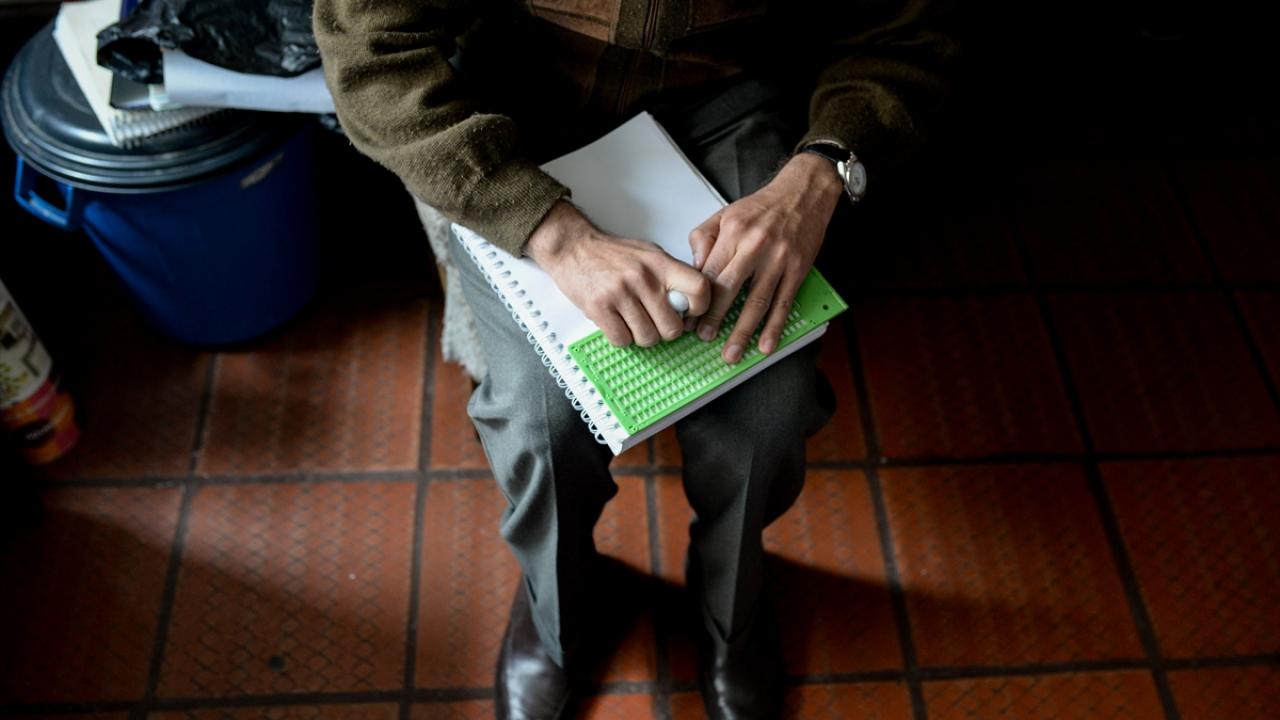 Doğduğu kasabadan ailesiyle ayrılarak Bogota`ya yerleşen 36 yaşındaki görme engelli Luis Lopez hayatını kolaylaştıran kabartma alfabesiyle eğitimine devam ediyor.