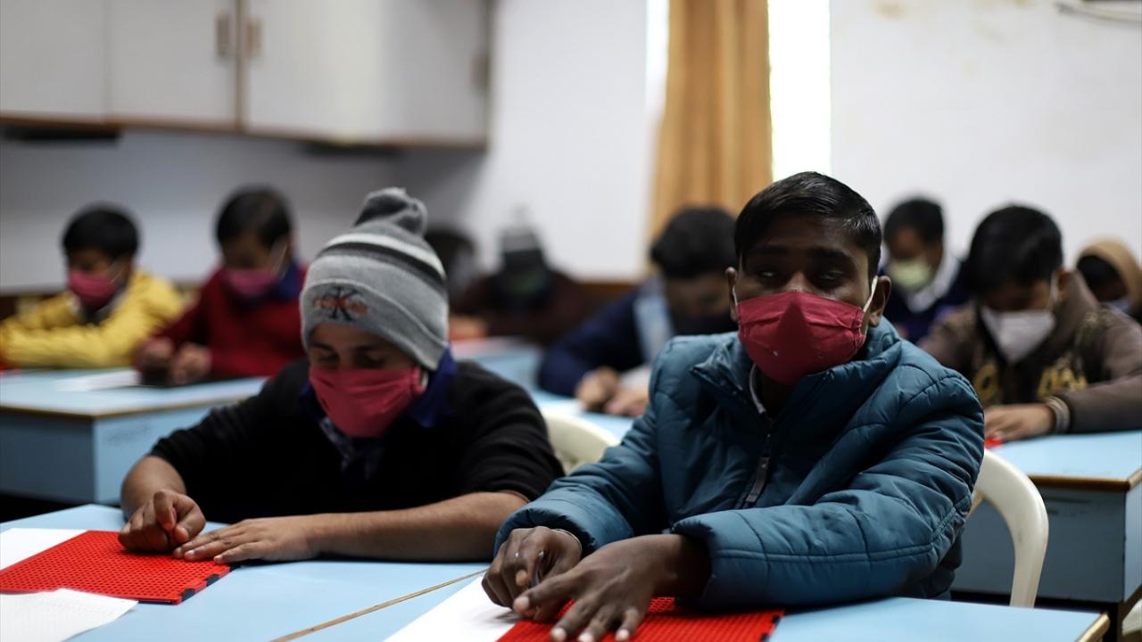 Hindistan`ın başkenti Yeni Delhi`de Görme Engellilere Yardım Derneği tarafından işletilen bir okulda görme engelli öğrenciler Braille sistemini kullanarak eğitim alıyor.