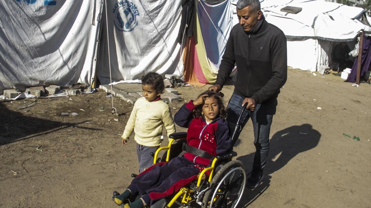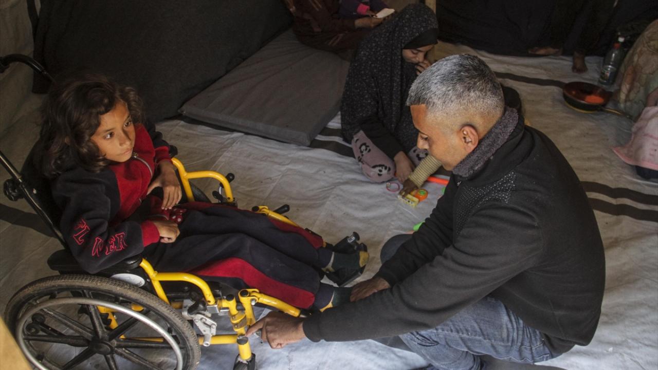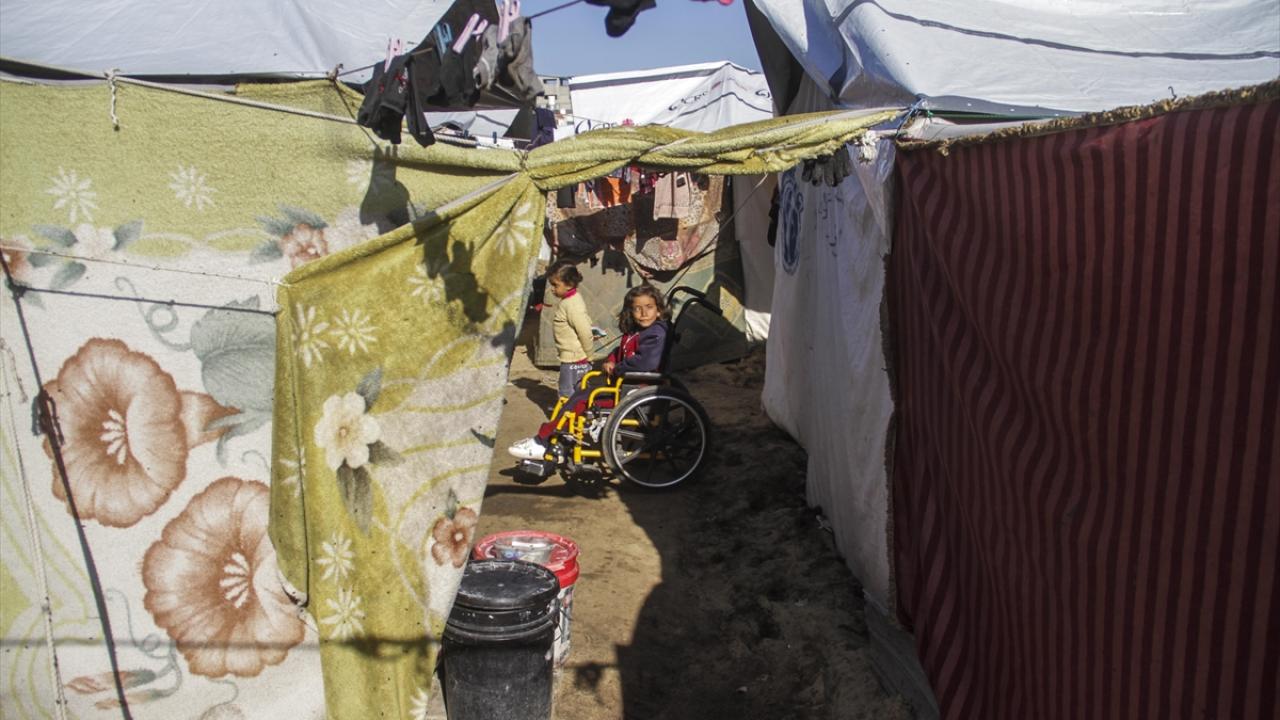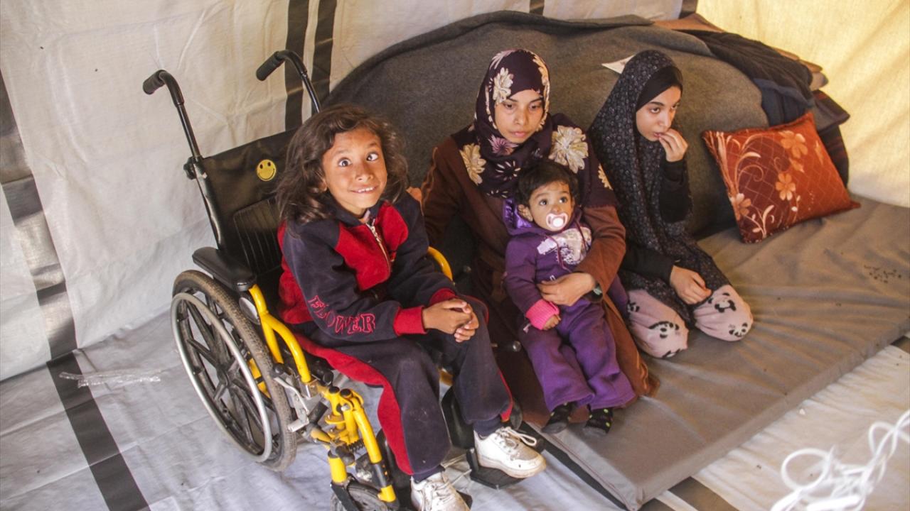 İsrail ordusunun saldırıları nedeniyle Gazze Şeridi`nin kuzeyinde yer alan Beyt Lahya kentinden ailesiyle birlikte Gazze kentindeki bir çadıra sığınan Beyin ve Sinir Hastası ve fiziksel engelli 9 yaşındaki Rafeef Mohammed Ebu El Kara, zor şartlar altında hayata tutunmaya çalışıyor.