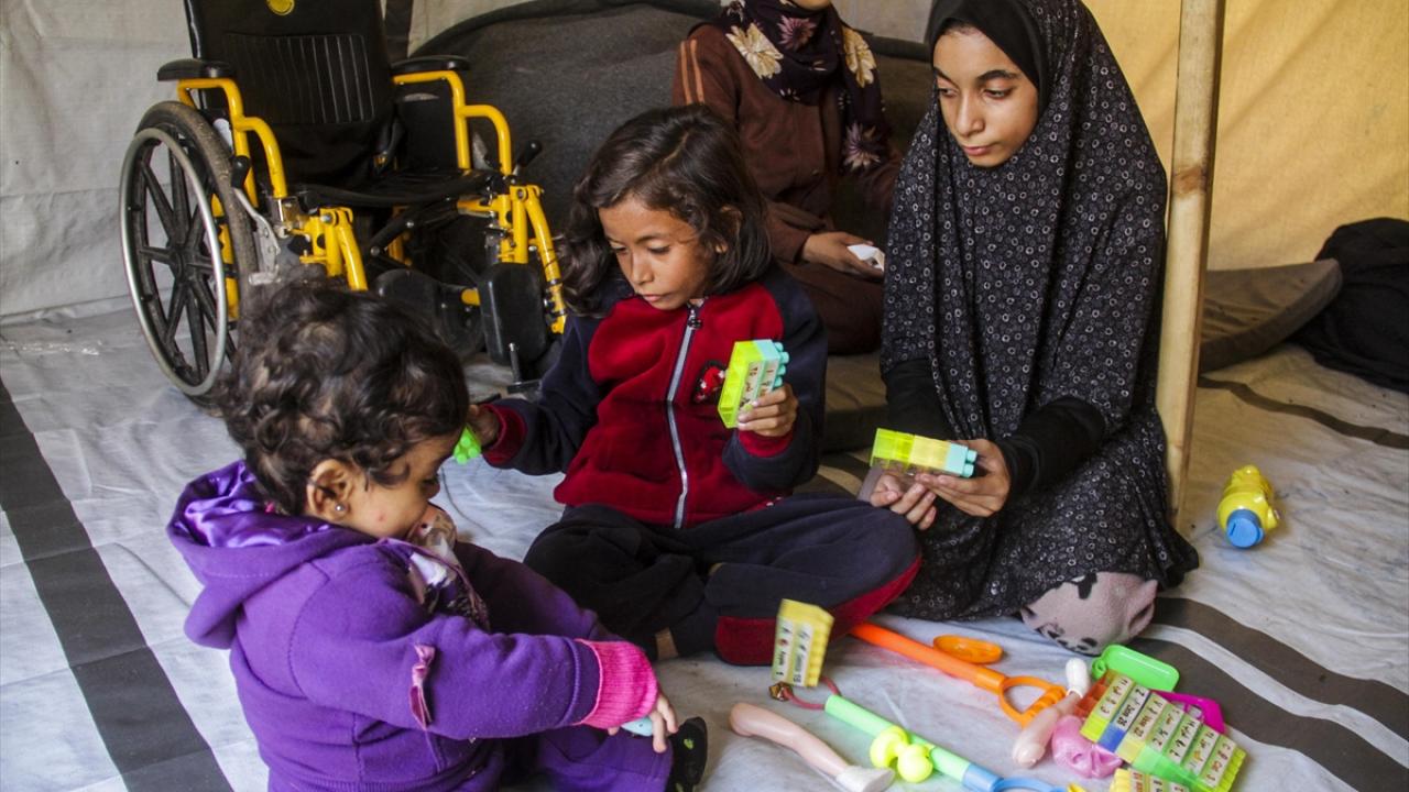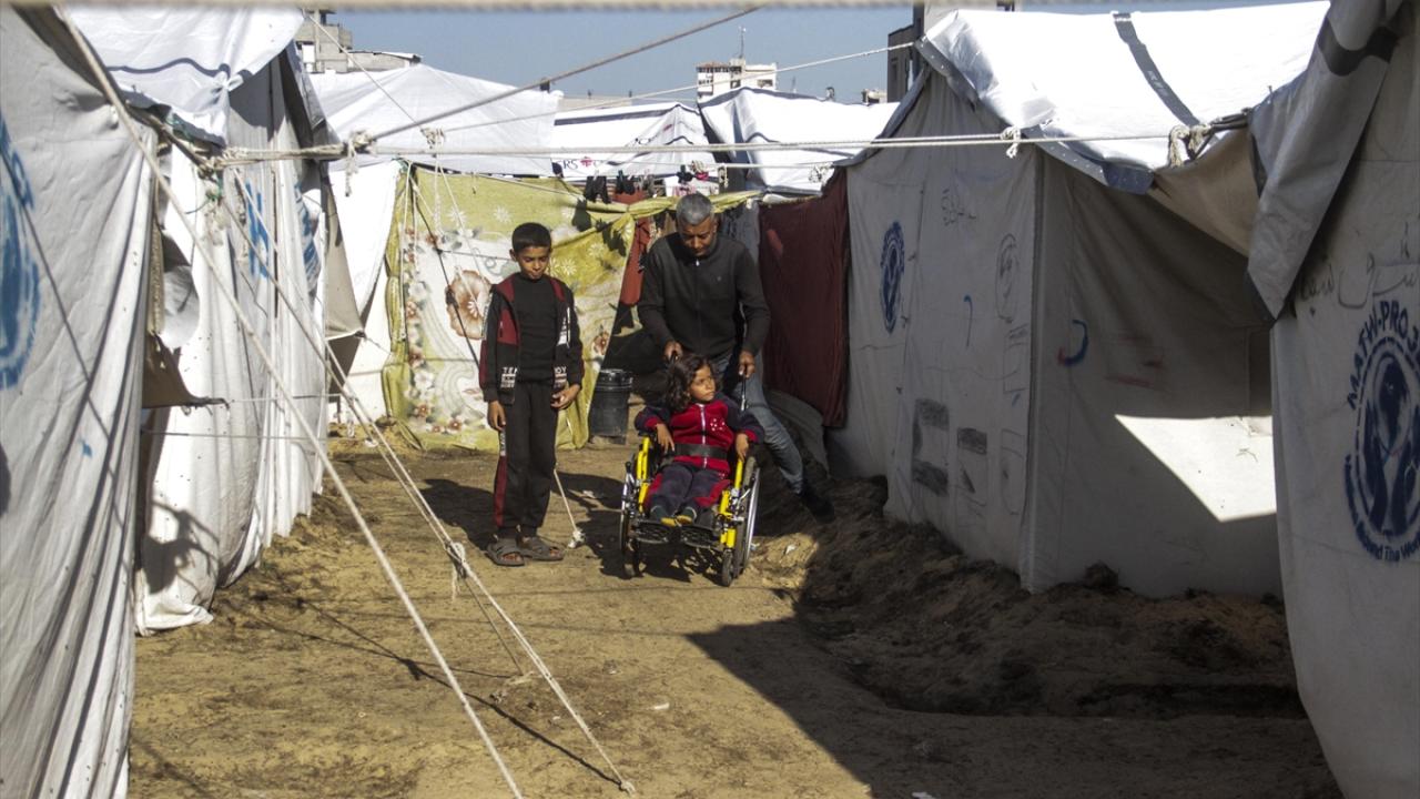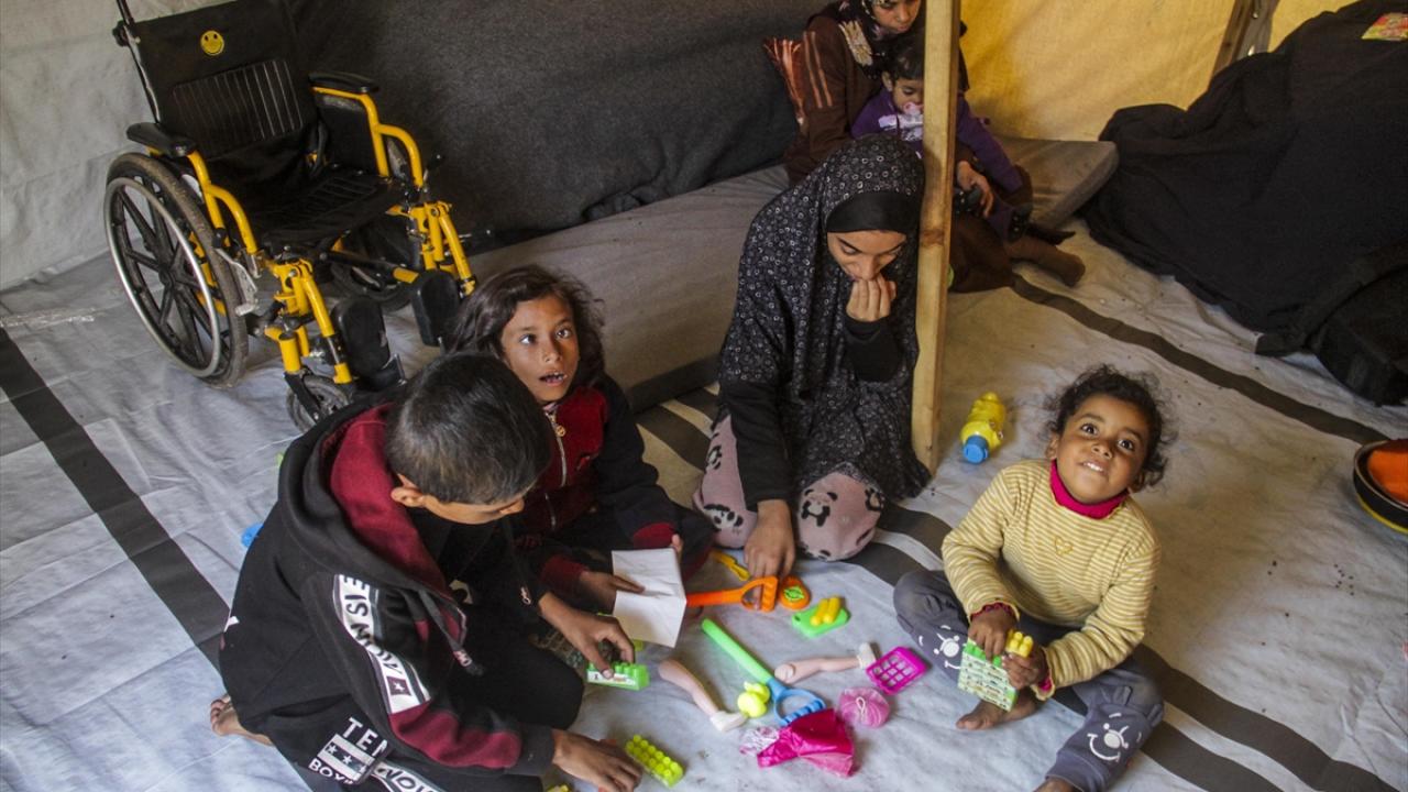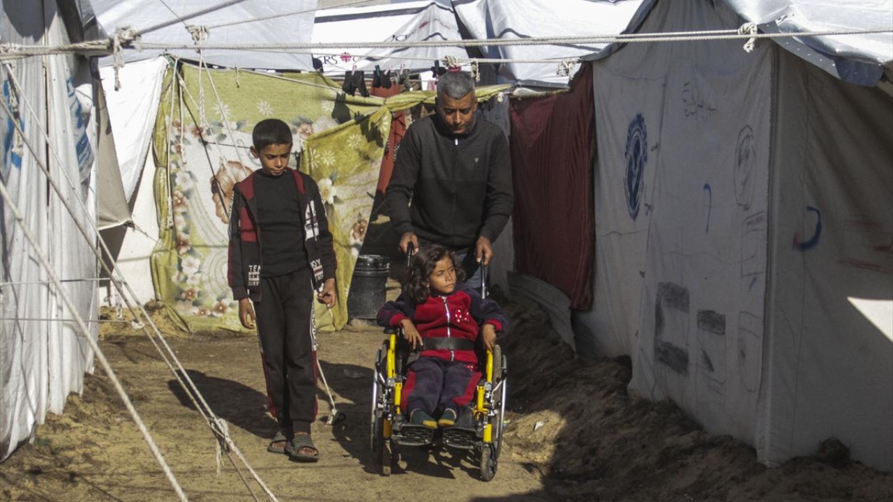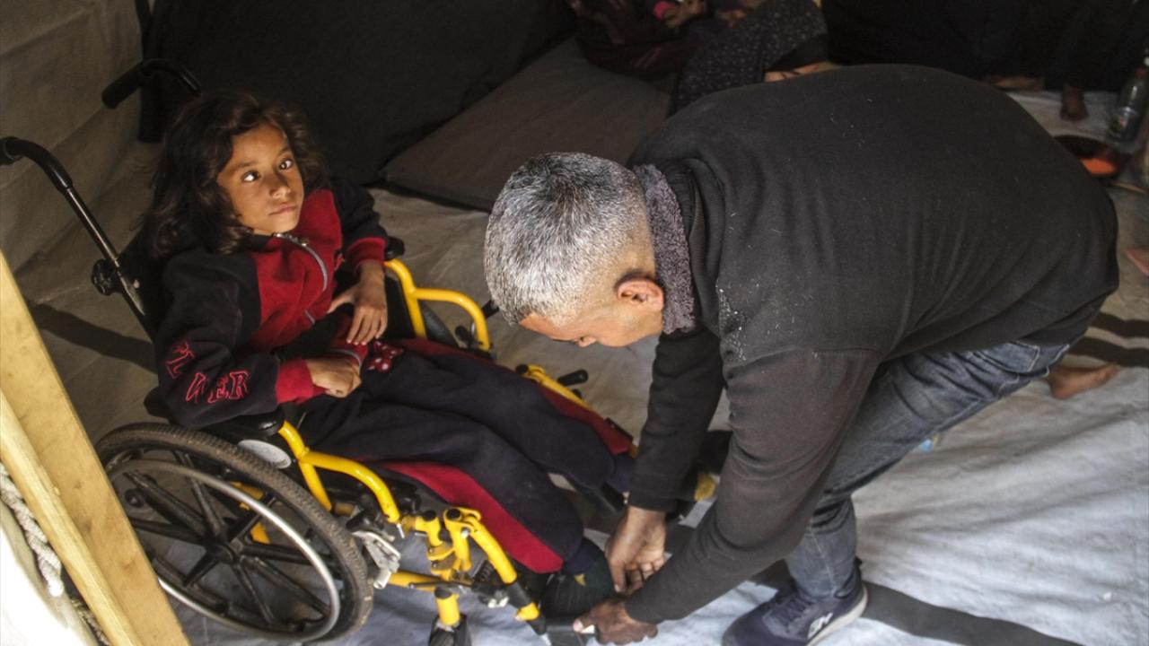 İsrail ordusunun saldırıları nedeniyle Gazze Şeridi`nin kuzeyinde yer alan Beyt Lahya kentinden ailesiyle birlikte Gazze kentindeki bir çadıra sığınan Beyin ve Sinir Hastası ve fiziksel engelli 9 yaşındaki Rafeef Mohammed Ebu El Kara, zor şartlar altında hayata tutunmaya çalışıyor.