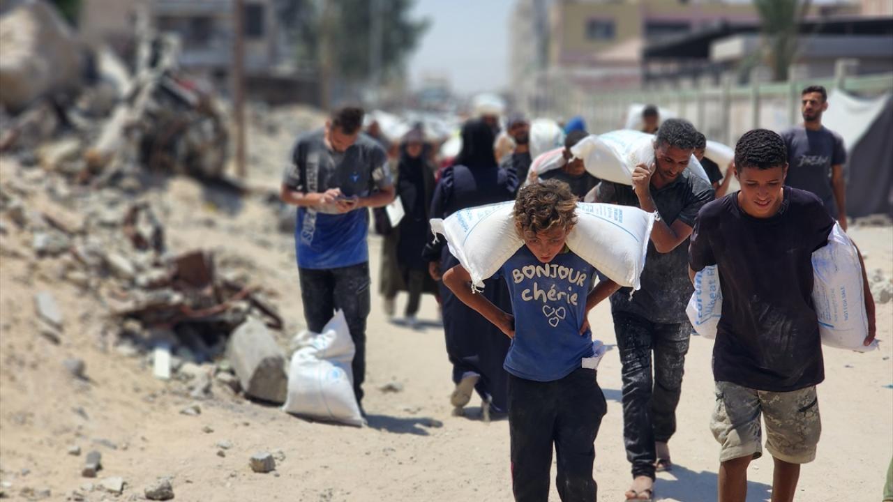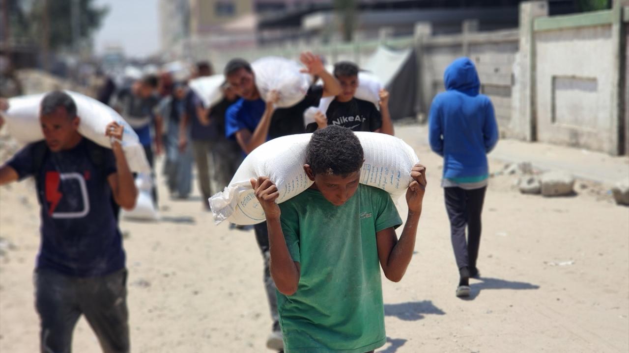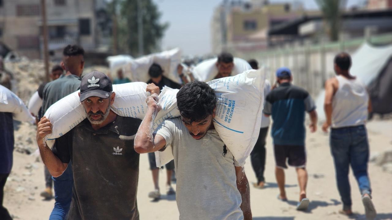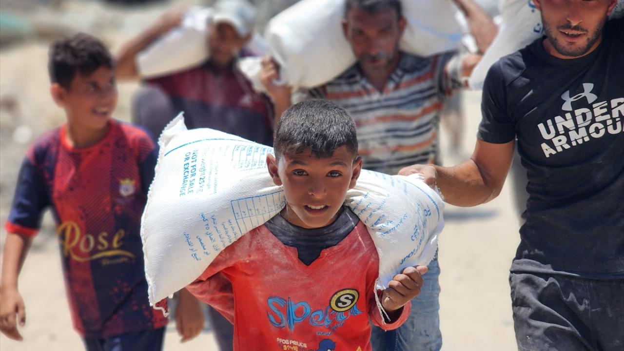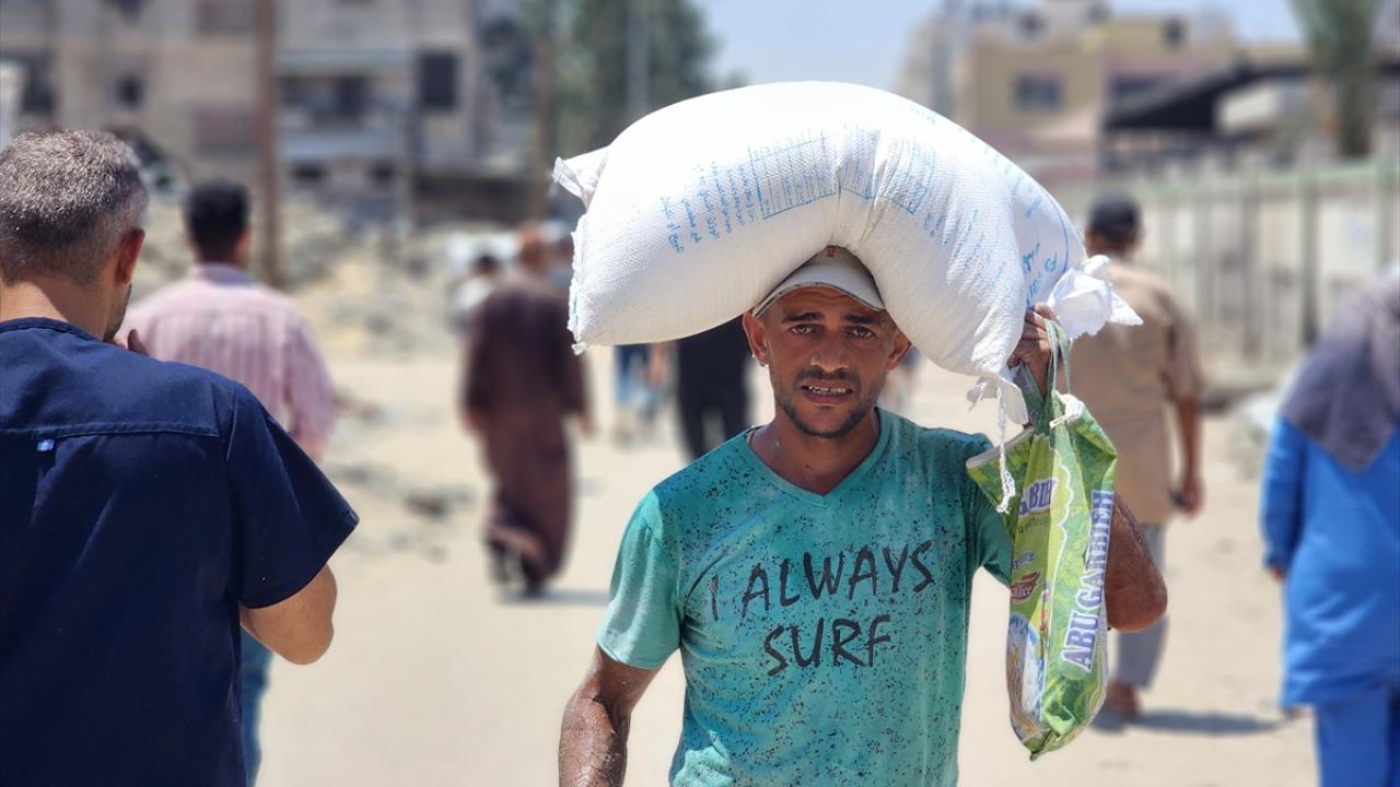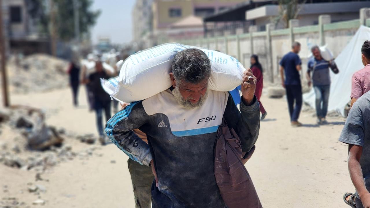 İsrail saldırıları altındaki Gazze Şeridi'nde açlıkla mücadele eden Filistinlilere un yardımı yapıldı.