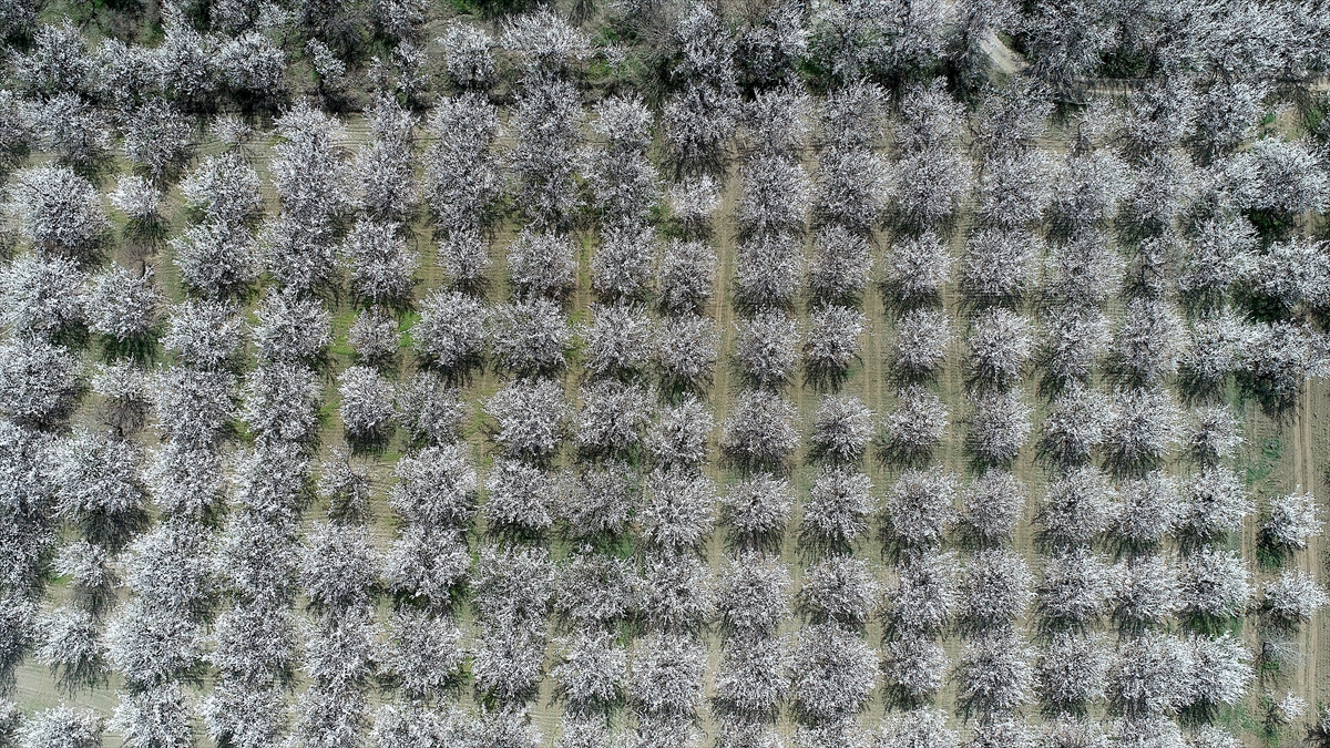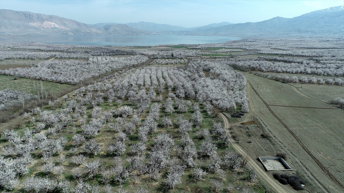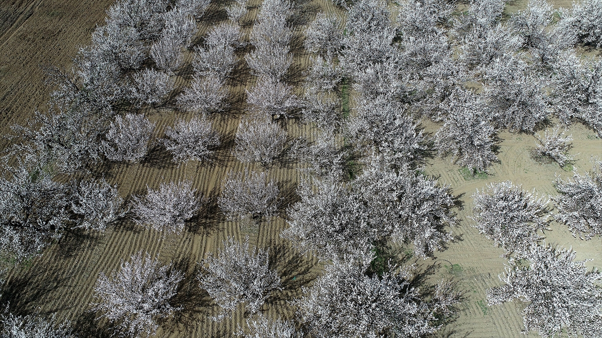 Malatya Ovası`nı beyaza bürüyen kayısı bahçelerinin arasında kalan yerleşim yerleri, açan kayısı çiçekleriyle adeta inci gerdanlıkla çevrelendi.