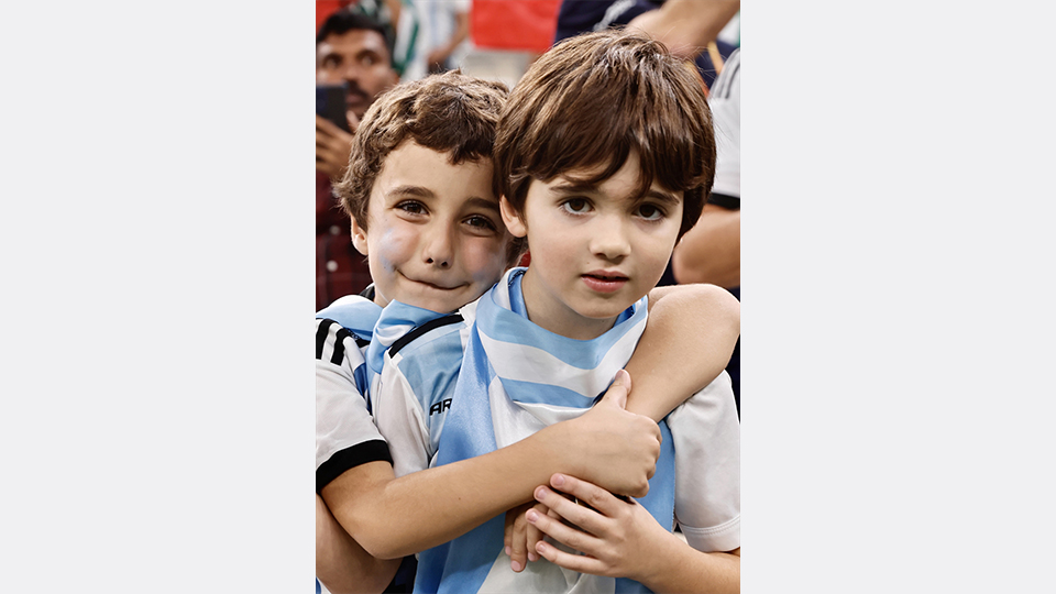 Katar’da düzenlenen 2022 Dünya Kupası’nda futbolcular sahada kıyasıya mücadele ederken, tribünlerde takımlarını aileleriyle desteklemeye gelen çocuk taraftarlar giydikleri kostümler, yüzlerine yaptıkları boyamalar ve taktıkları aksesuarlarla ilgi çekiyor.