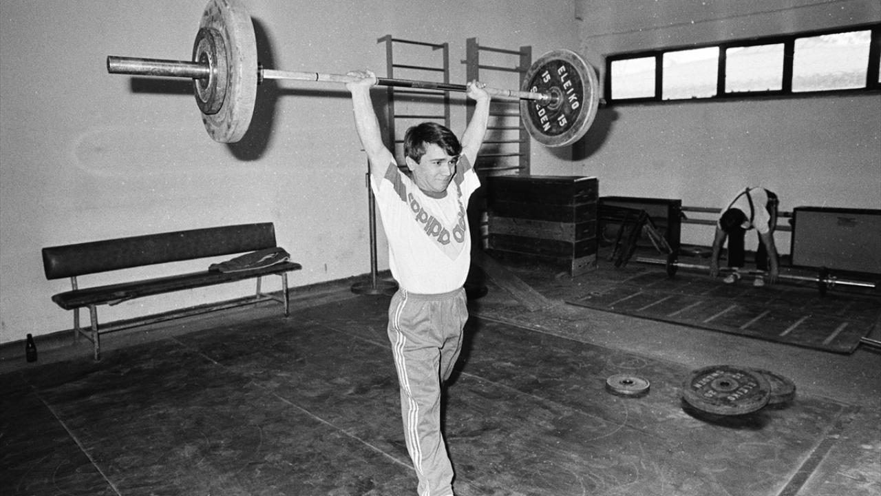 1 Şubat 1989`da, Dünya Şampiyonu milli halterci Naim Süleymanoğlu, Balkan Şampiyonası için hazırlanırken. (Arşiv)