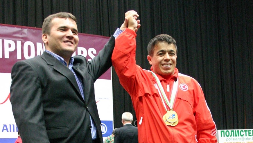 20 Nisan 2005`de 84.Avrupa Erkekler Halter Şampiyonası`nda 62 kiloda Halil Mutlu (sağda), koparmada 140 kiloluk kaldırışıyla altın madalya kazanmıştı. Mutlu`yu Dünya ve Olimpiyat Şampiyonu Eski Halterci Naim Süleymanoğlu (solda) da tebrik etmişti (Arşiv)