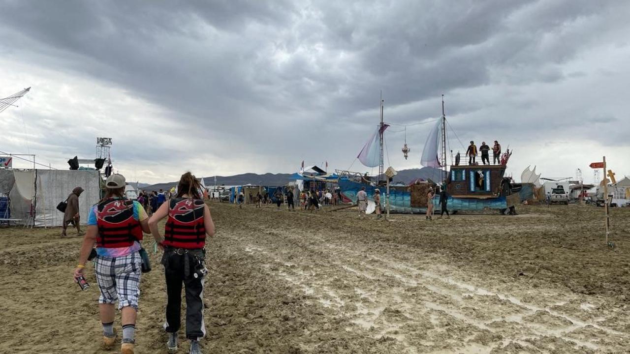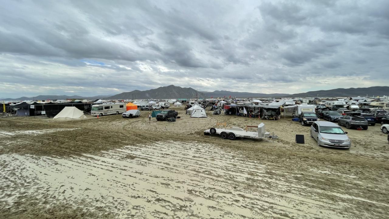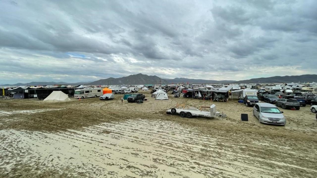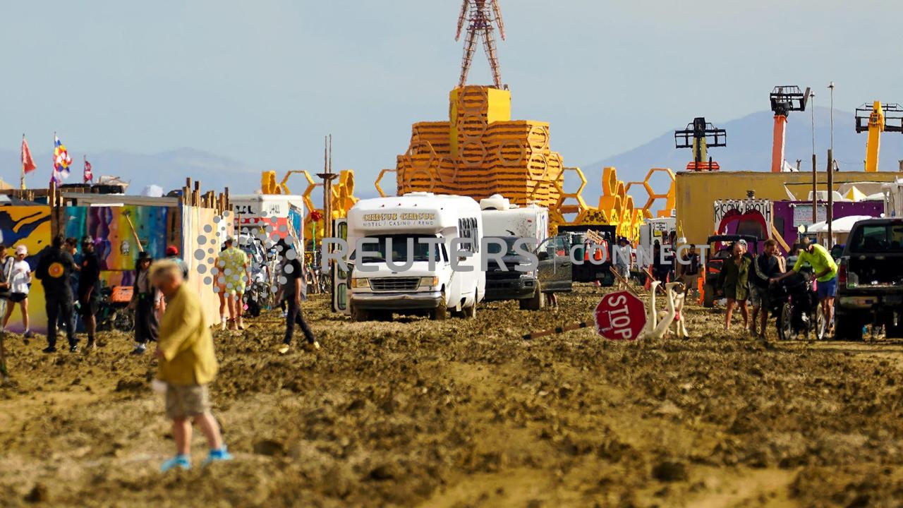 Nevada eyaletinde Black Rock Çölü üzerinde kurlu festival alanı şiddetli yağışlar sonrası çamurla kaplandı.