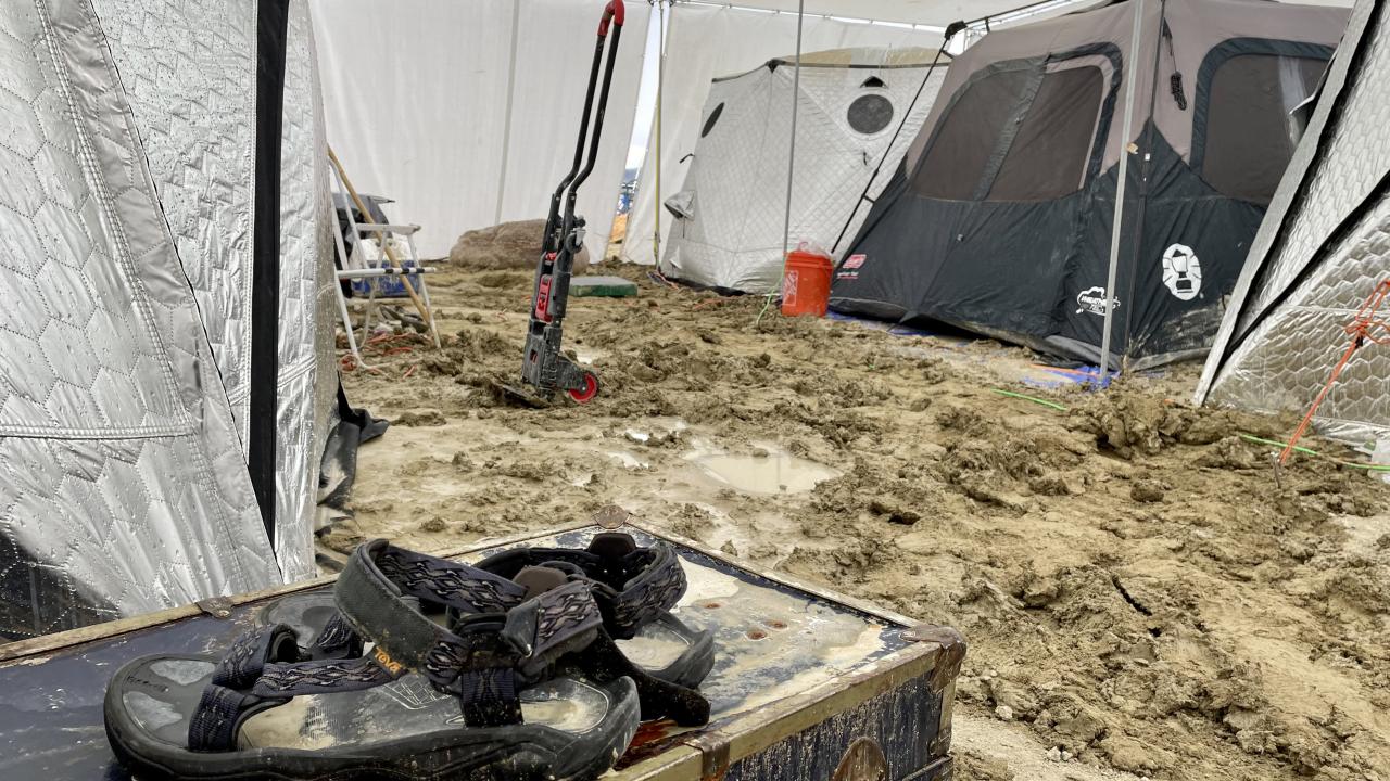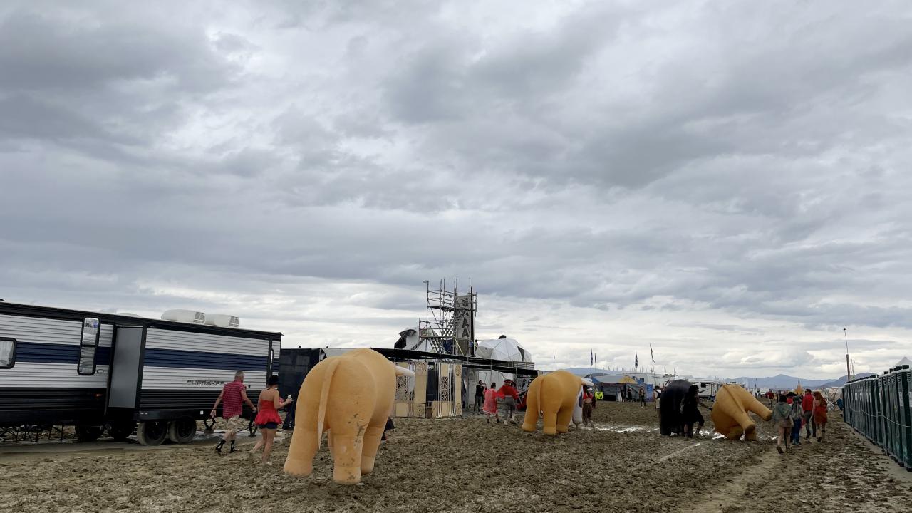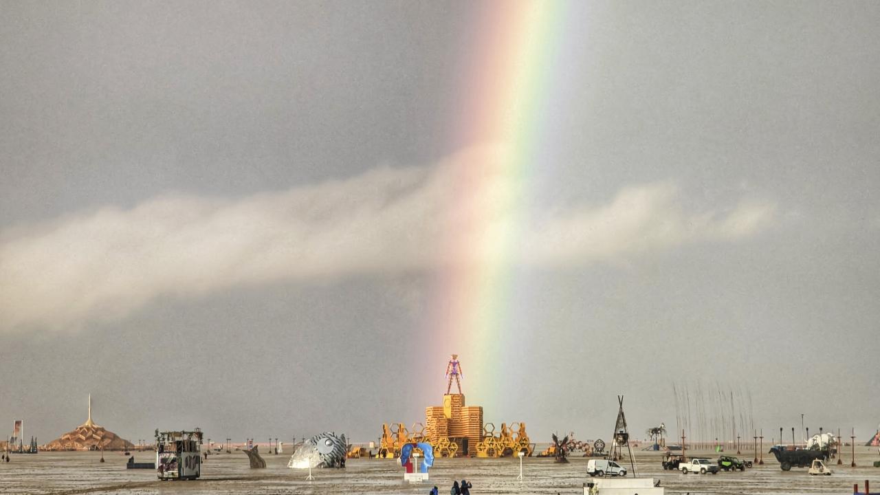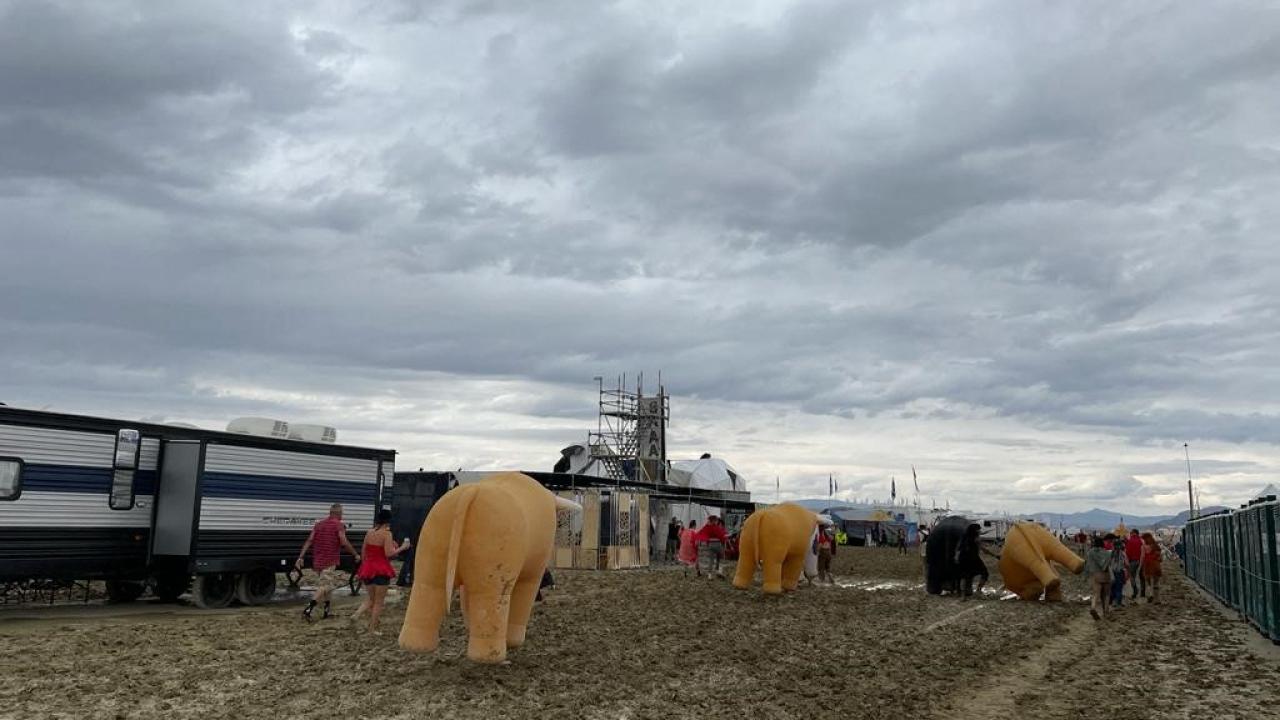 Nevada eyaletinde Black Rock Çölü üzerinde kurlu festival alanı şiddetli yağışlar sonrası çamurla kaplandı.