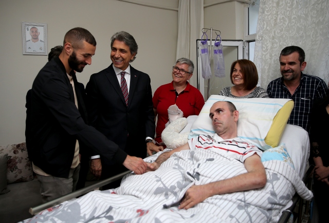 Real Madrid`in Cezayir asıllı Fransız futbolcusu Karim Benzema (solda), İstanbul`un Fatih İlçesi`nde düzenlenen sokak iftarına katıldı. Benzema ve Fatih Belediye Başkanı Mustafa Demir (sol 2), iftar öncesinde engelli Zekeriya Akgül`ün evini ziyaret etti.