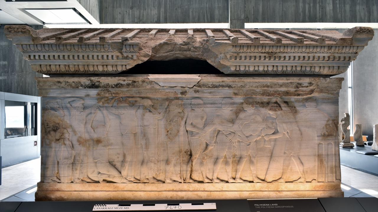 Troya Müzesindeki mermerden yapılan Altıkulaç Lahdi veya Çan Lahdi, milattan önce 4. yüzyılın başlarına tarihleniyor.