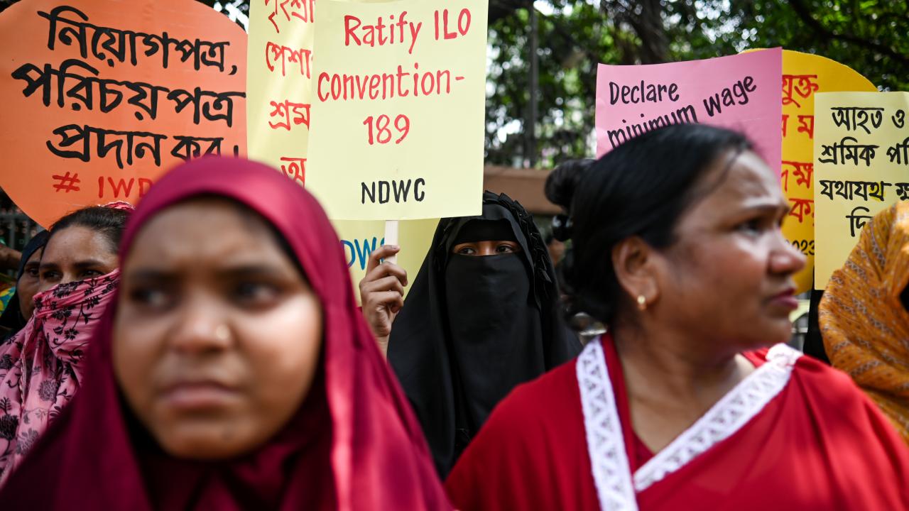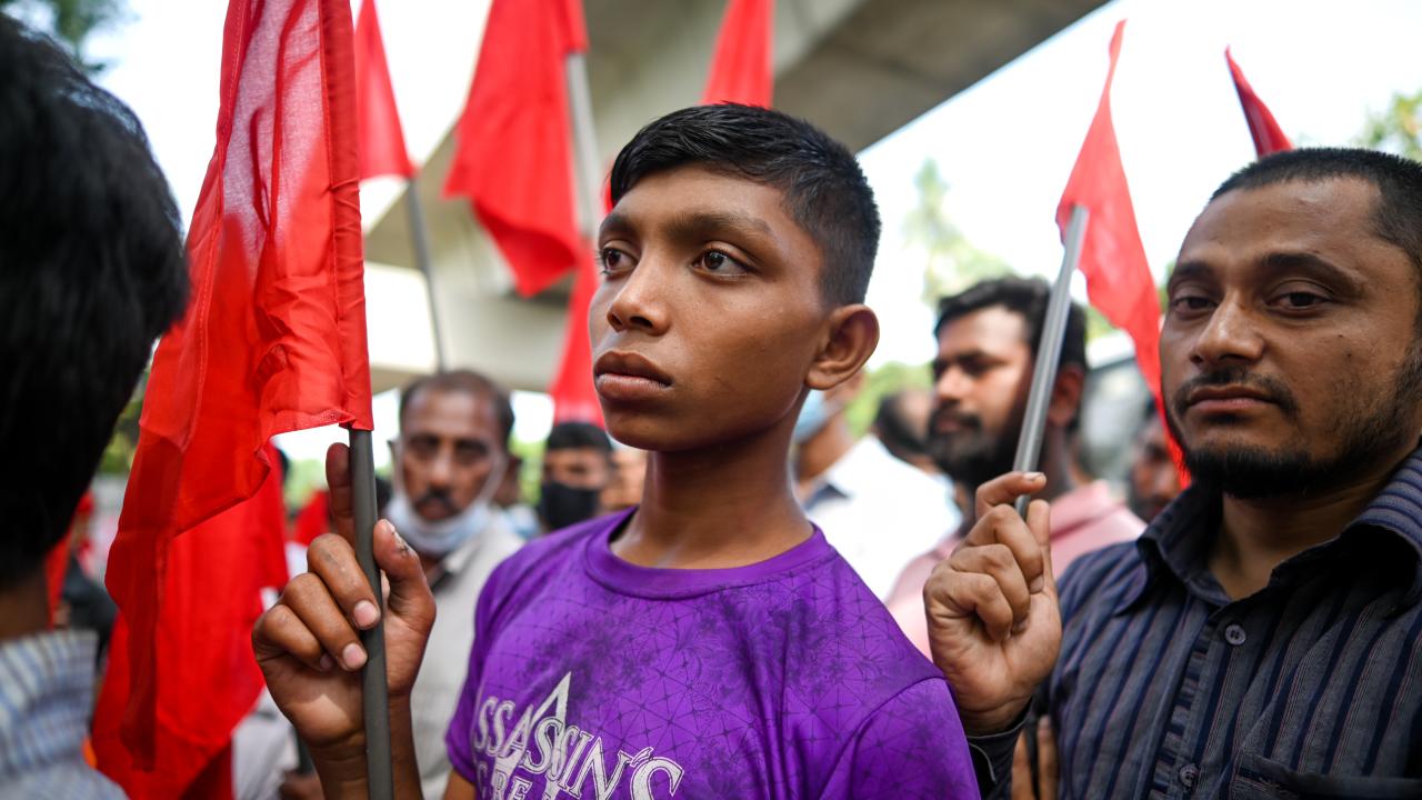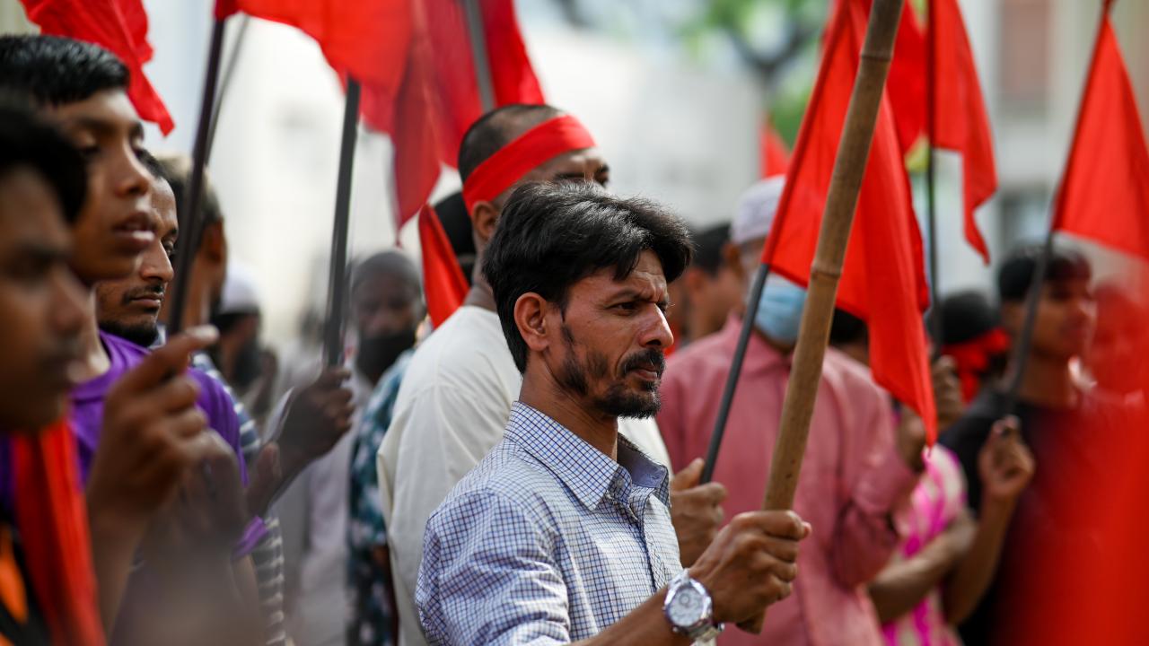 Bangladeş`in başkenti Dakka`da 1 Mayıs Emek ve Dayanışma Günü`nde çeşitli sendika ve sivil toplum kuruluşları üyelerinin katılımıyla gösteri düzenlendi.