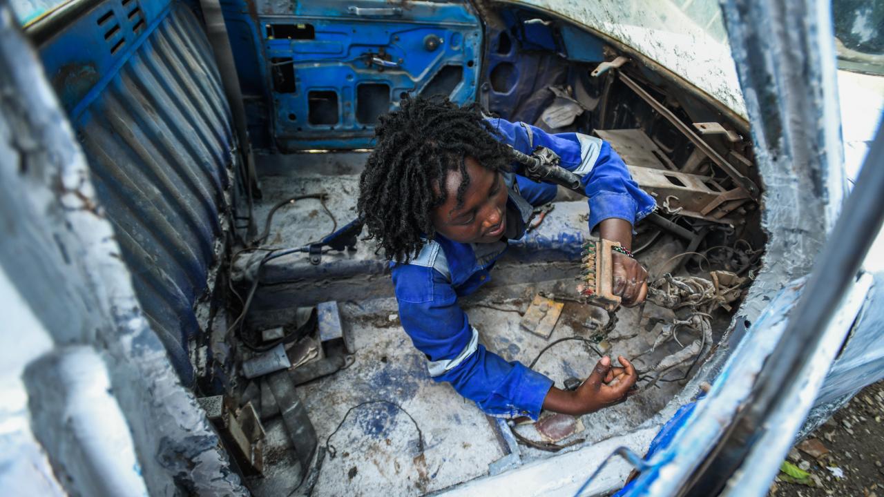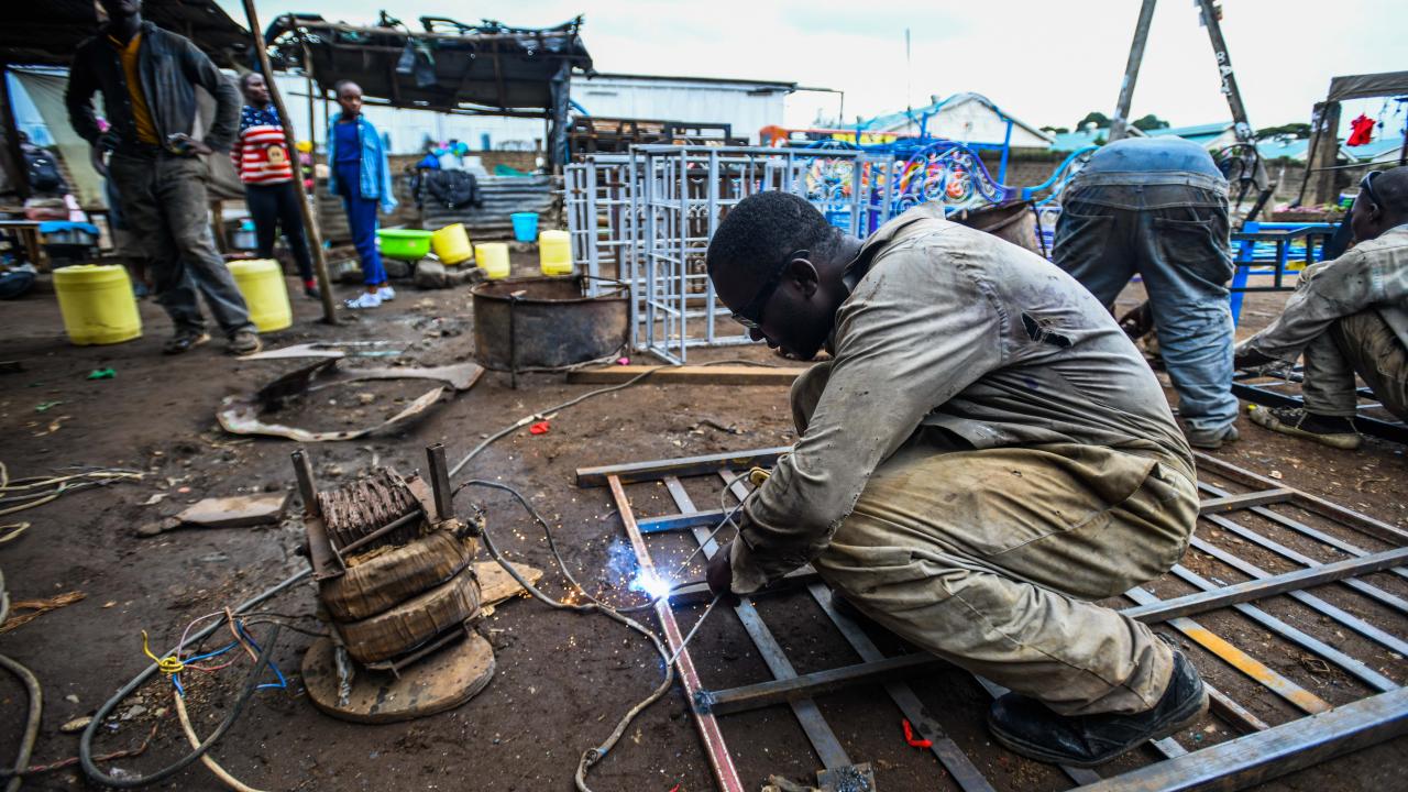 Kenya`nın başkenti Nairobi`deki işçiler, 1 Mayıs Emek ve Dayanışma Günü`nü çalışarak kutluyor. Başkentin Nairobi`nin gecekondu mahallesi Mathare sakinleri, ailelerinin geçimini sağlamak için demircilik, oto tamirciliğe, terzi veya seyyar satıcı gibi mesleklerde çalışıyor.
