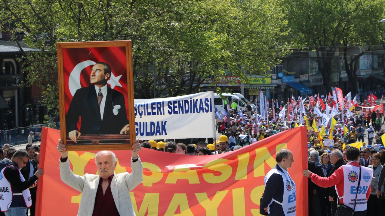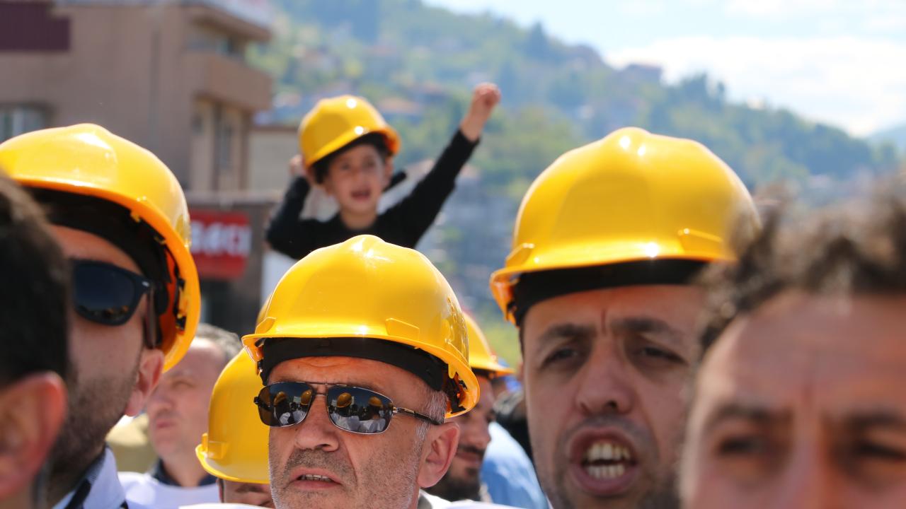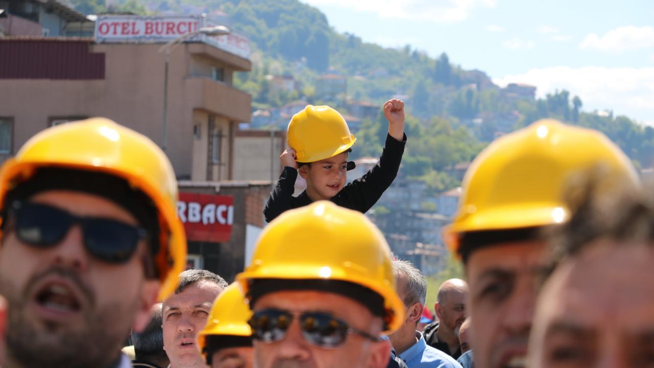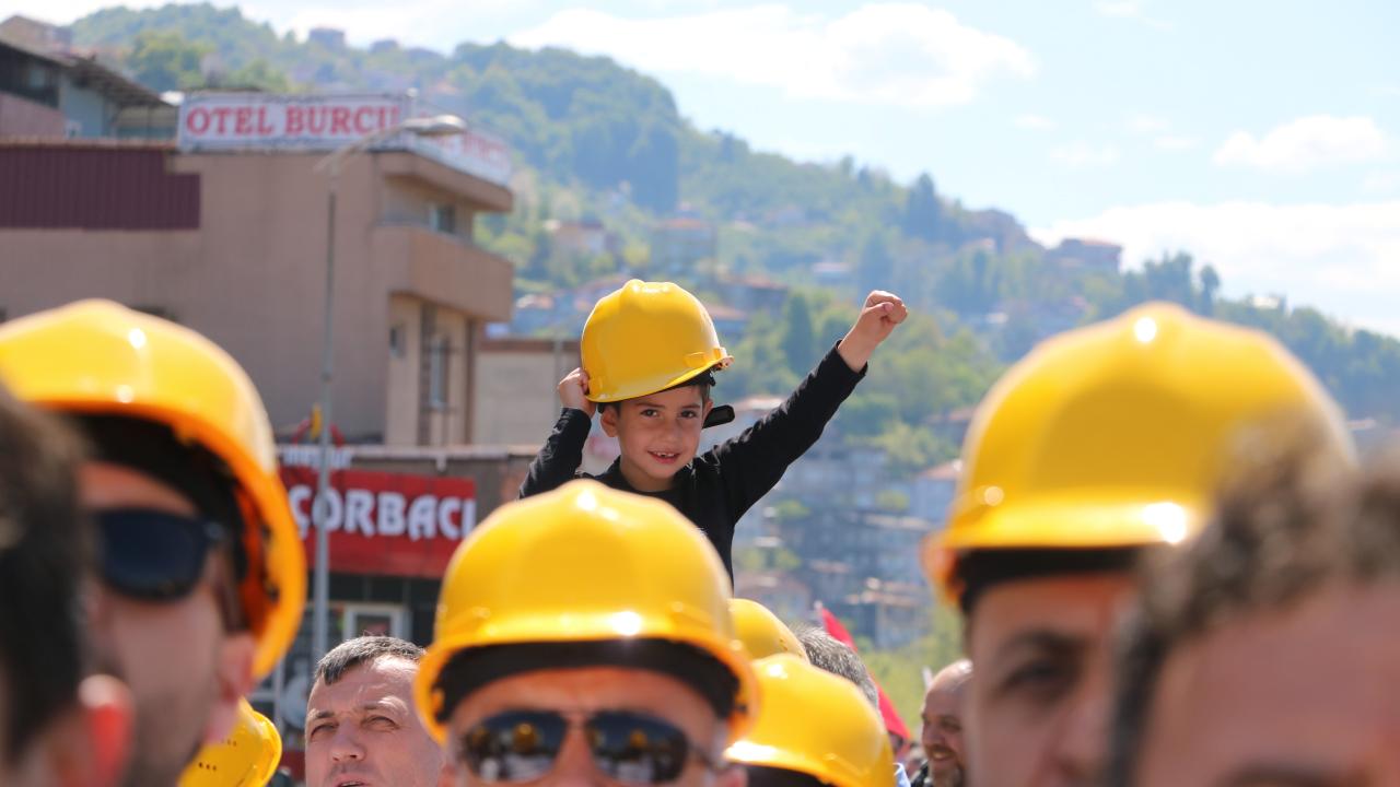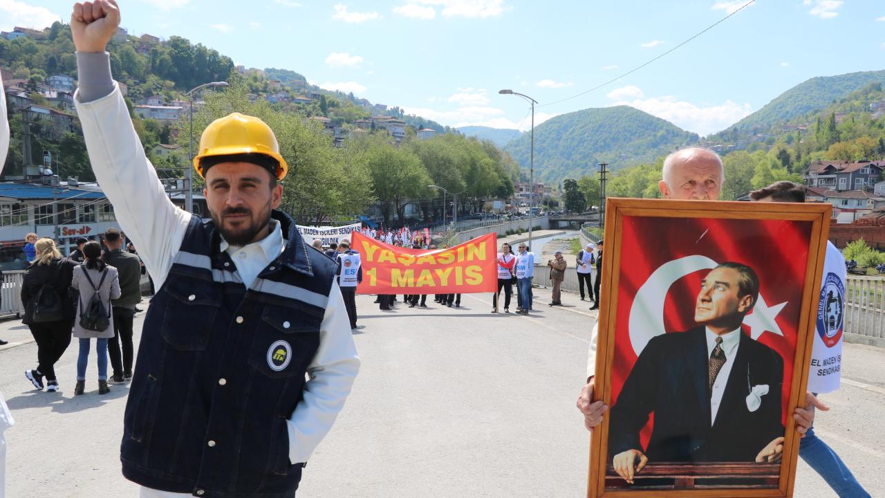 Emeğin başkenti olarak anılan Zonguldak`ta 1 Mayıs Emek ve Dayanışma Günü`nde işçiler, Madenci Anıtı`na kadar yürüdü.