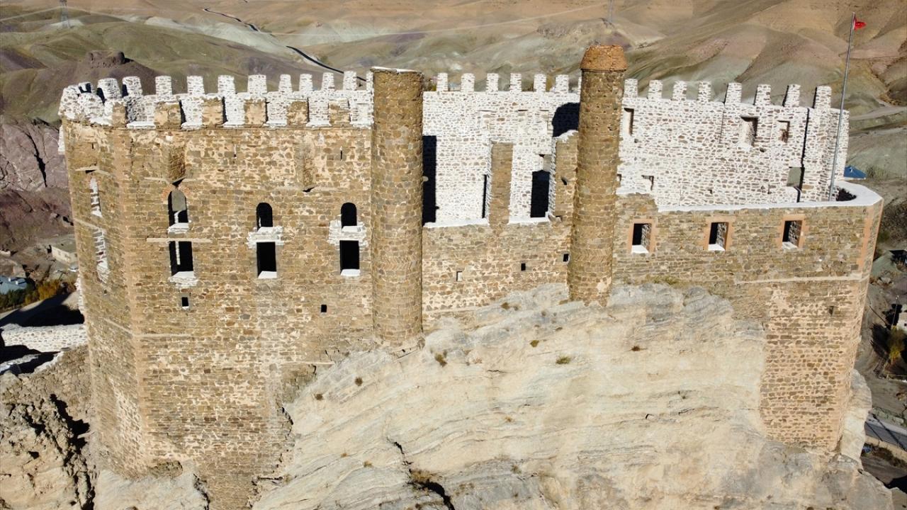 Van Müzesi`nin denetiminde yürütülen çalışmada, geçmişi Urartular dönemine kadar uzanan ve Osmanlı Devleti`ne tabi Mahmudi Beyleri`nin yaptırdığı şekliyle bugüne ulaşan kalenin tahrip olan bölümleri yeniden ayağa kaldırılıyor.