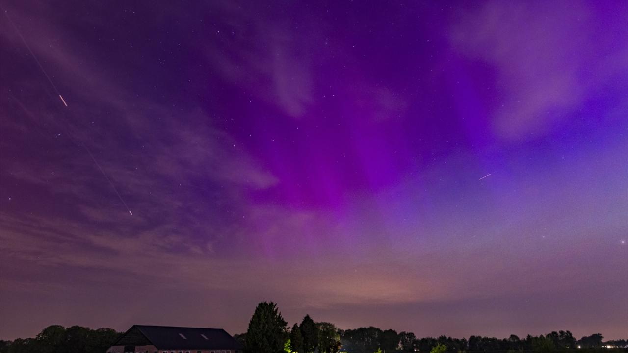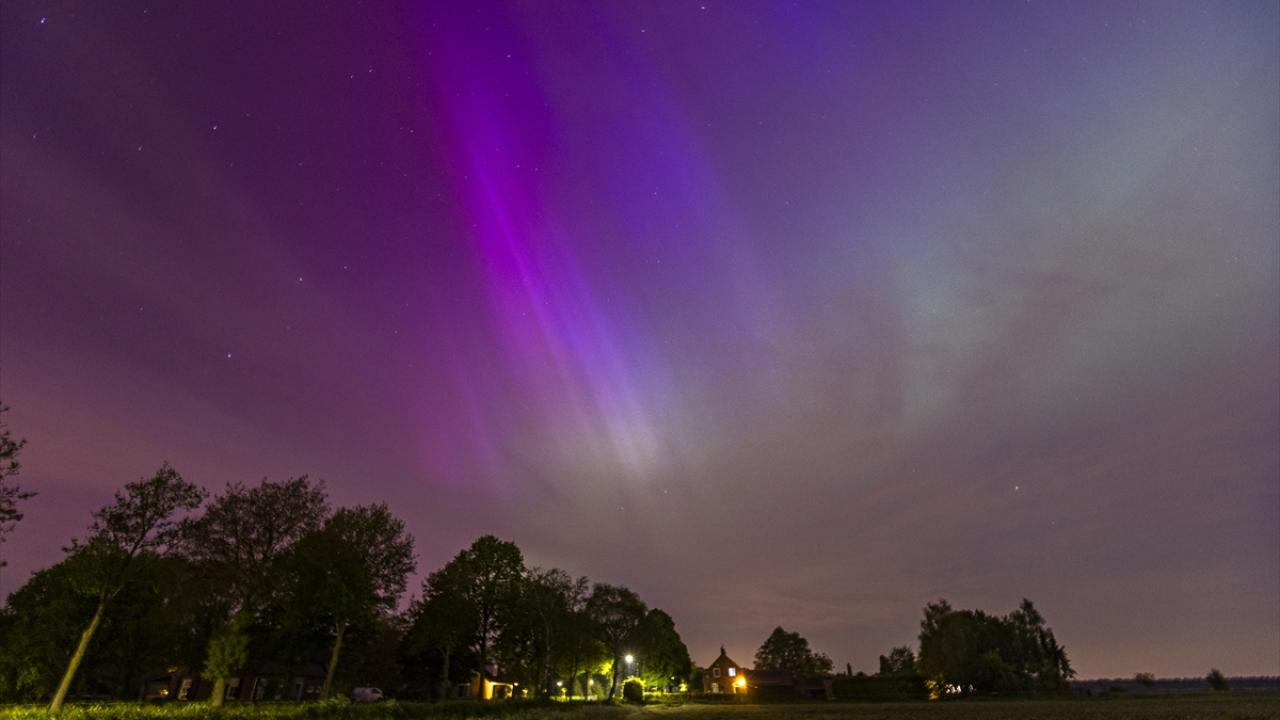 Kuzey Işıkları (Aurora Borealis), Hollanda`nın Eindhoven kentinde güzel görüntüler oluşturdu.