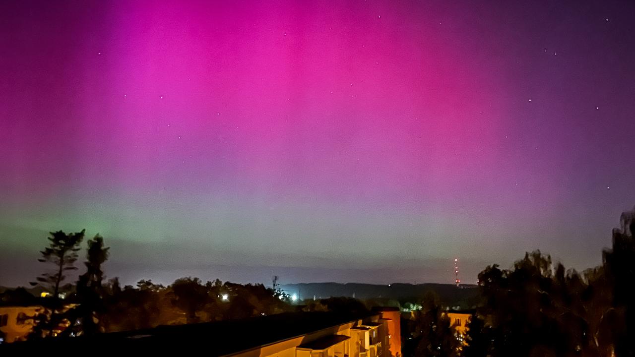 Kuzey Işıkları (Aurora Borealis), Çekya`nın Ostrava kentinde güzel görüntüler oluşturdu.