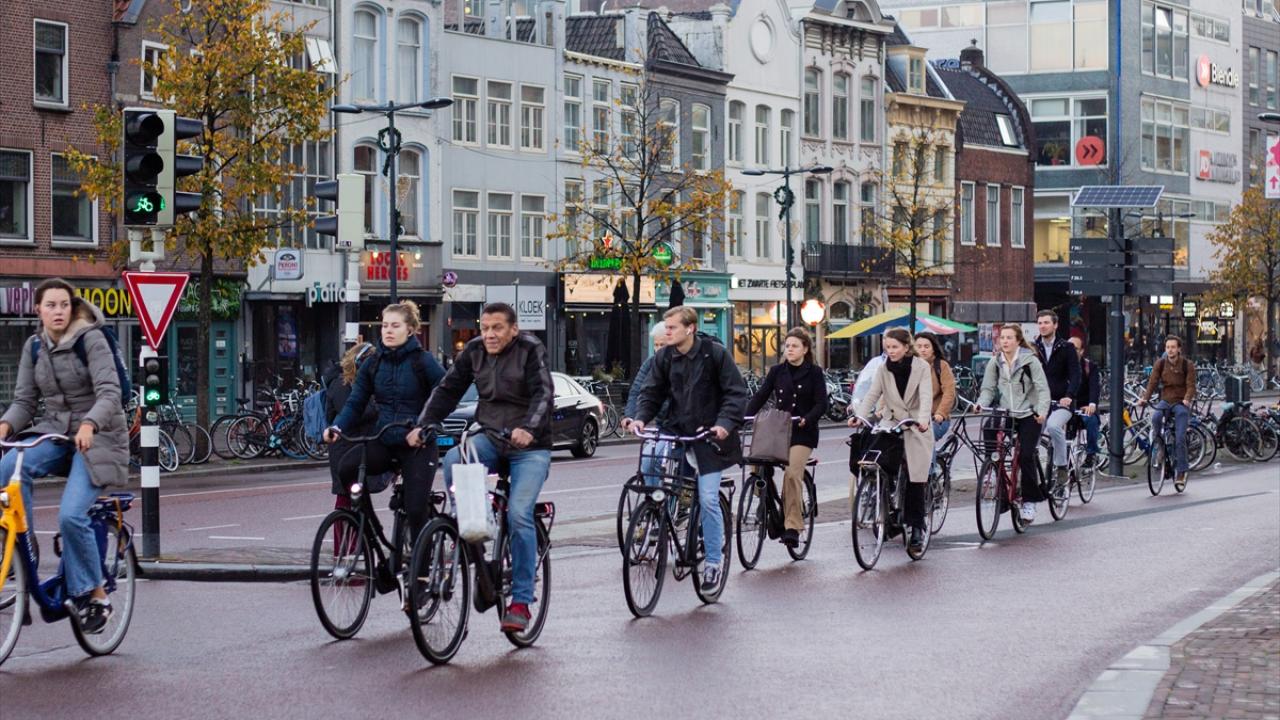 Utrecht kentinde her gün 125 binden fazla kişi işe, okula, tren istasyonuna ve alışverişe bisikletle gidiyor ve bu sayı giderek artıyor.