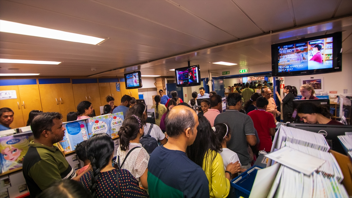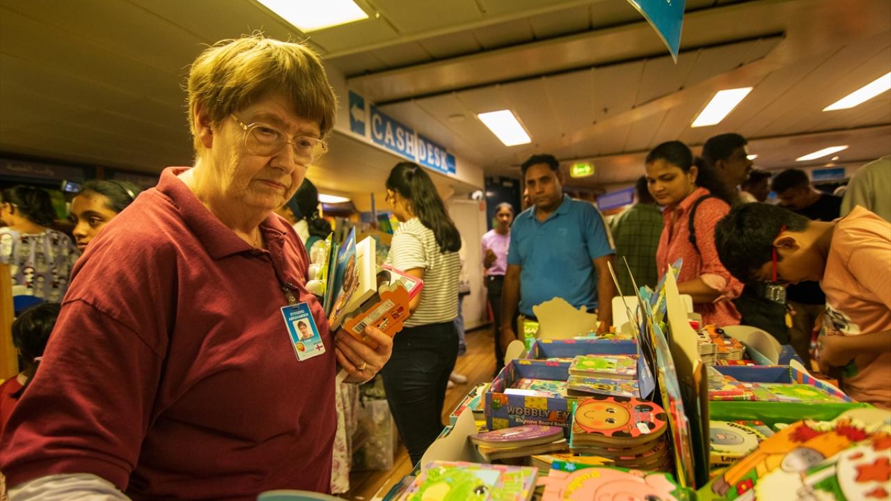 Ziyaretçiler kütüphaneyi ziyaret etmekle kalmıyor, ayrıca "Logos Hope" içinde yürütülen çeşitli kültürel faaliyetlere de katılıyor.
