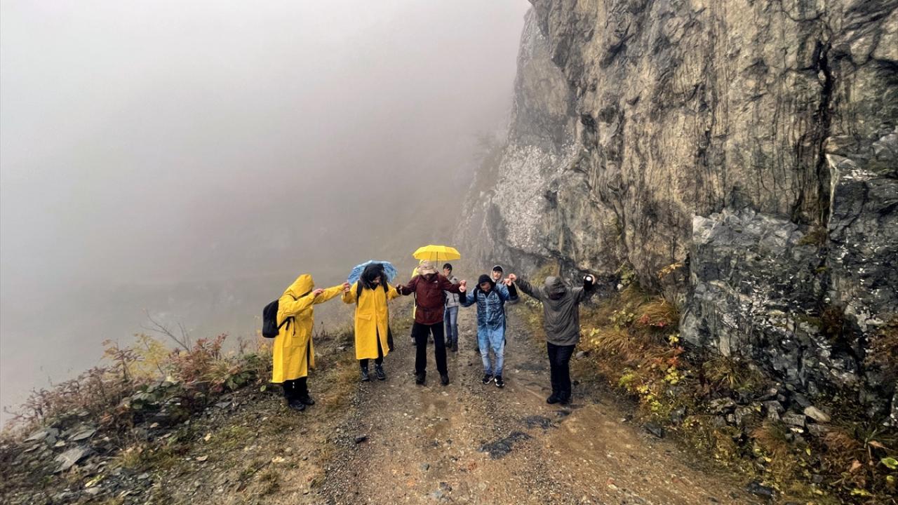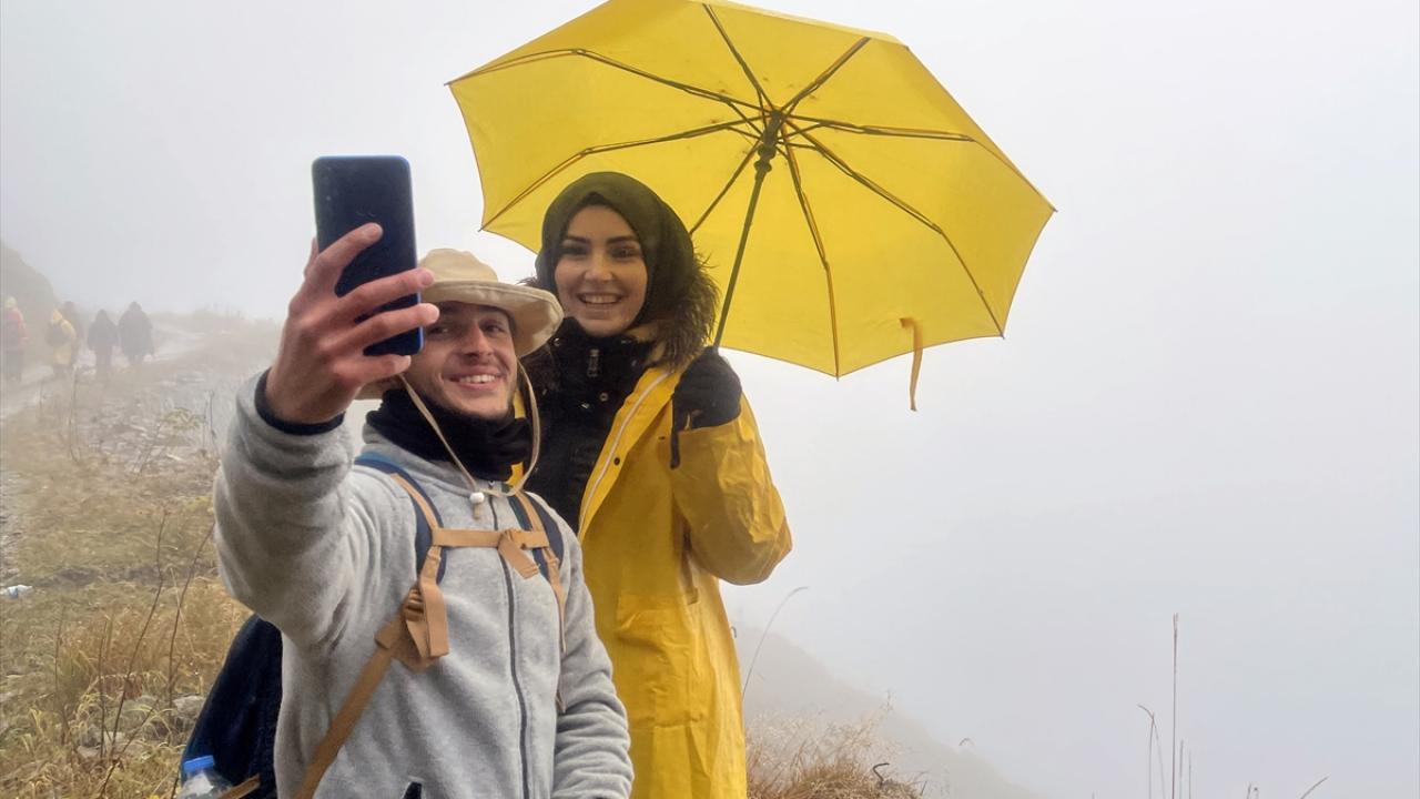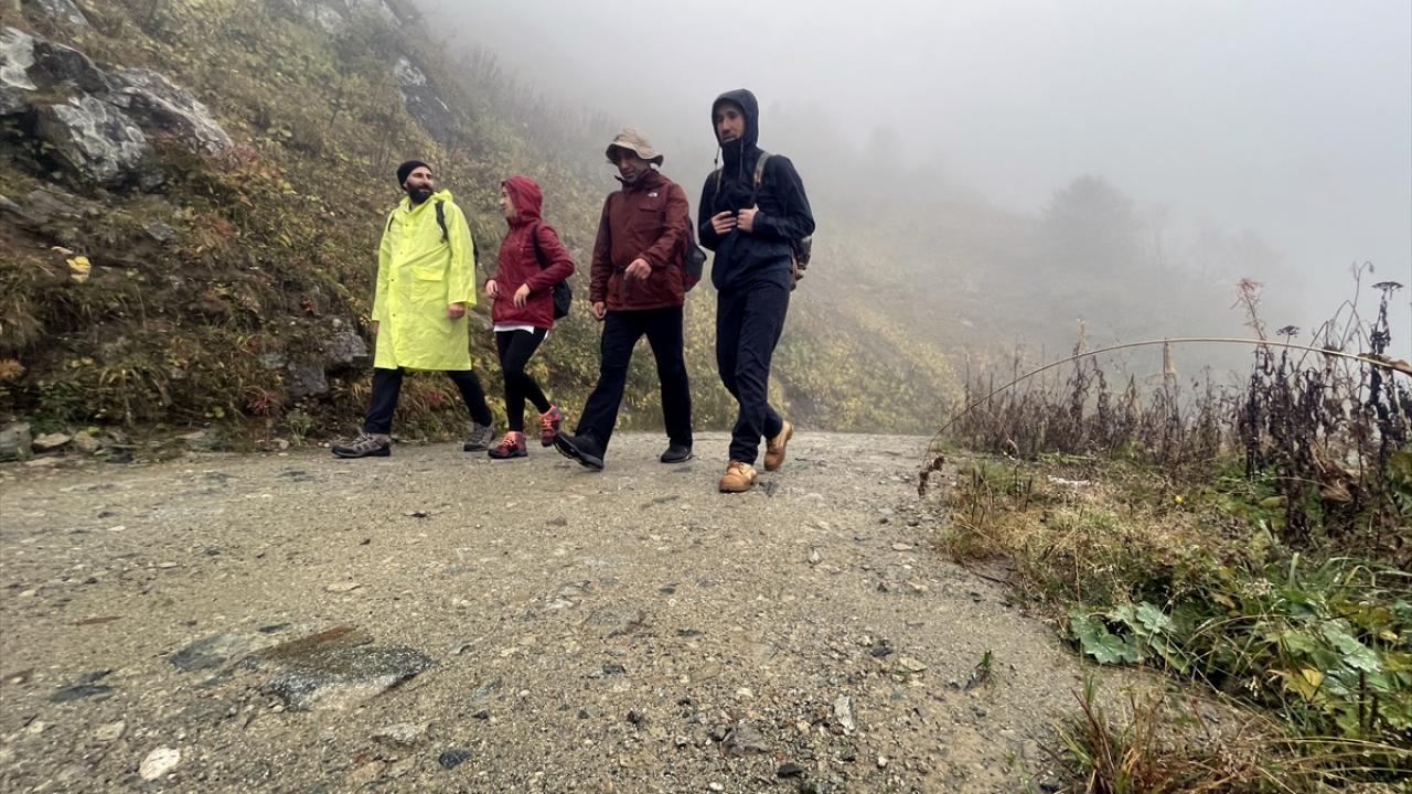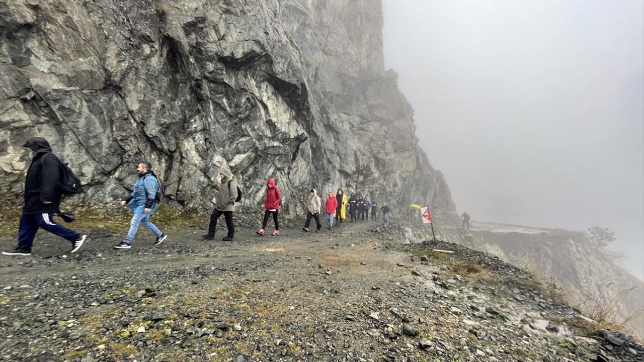 Yoğun sis ile yağmurun da etkili olduğu güzergahta yürüyüşlerini sürdüren ekip, yaklaşık 15 kilometre katetti.