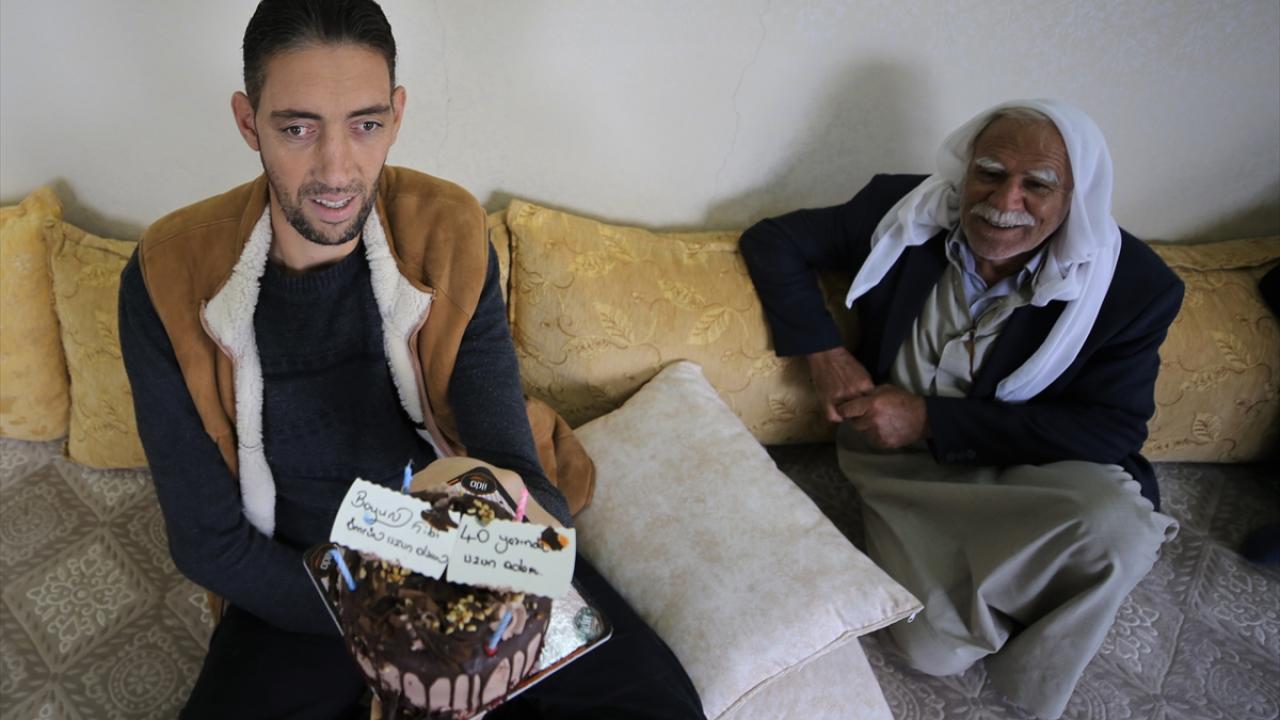 Mardin'de yaşayan 2 metre 51 santimetre boyu ile "dünyanın en uzun boylu adamı" unvanını 13 yıldır koruyan Sultan Kösen, 40'ıncı yaşını evinde, ailesiyle birlikte kutladı.