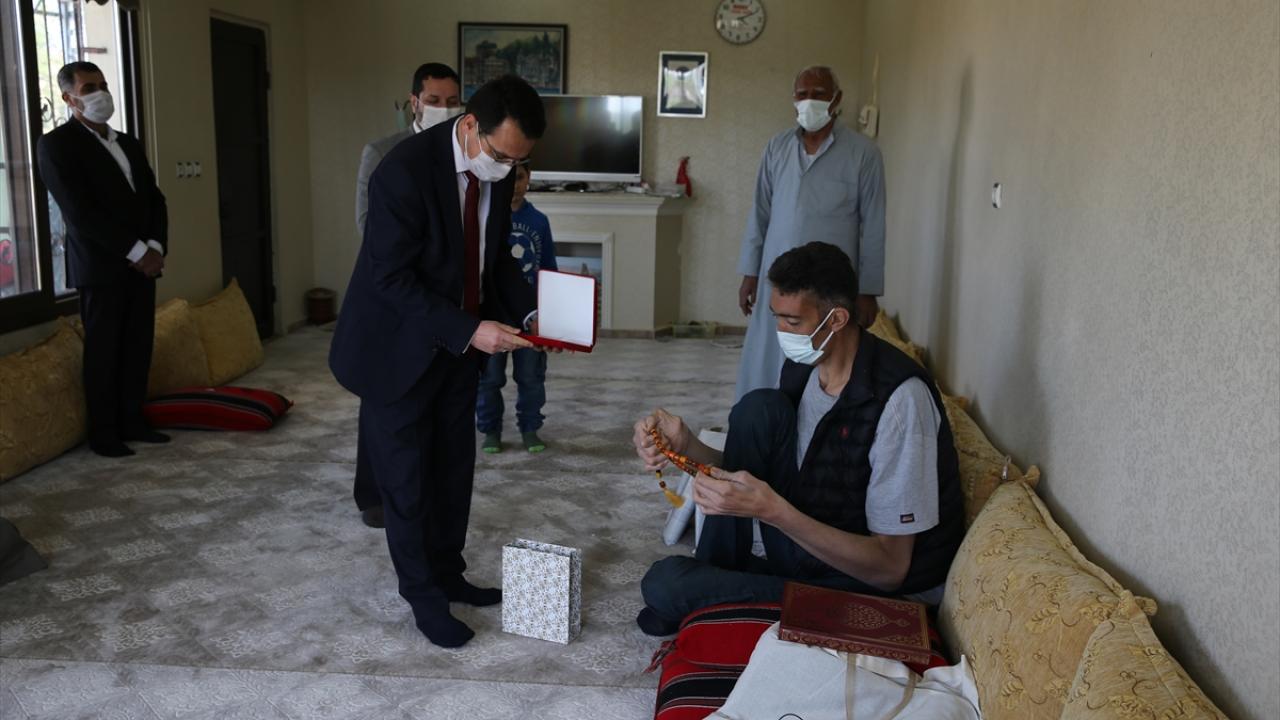 Mardin Müftülüğü, 2 metre 51 santimetre boyuyla "dünyanın en uzun boylu adamı" unvanını taşıyan Sultan Kösen'e kendisi için özel hazırlanan 2 metre uzunluğunda seccadenin yanı sıra tespih ve Kur’an-ı Kerim hediye etti.