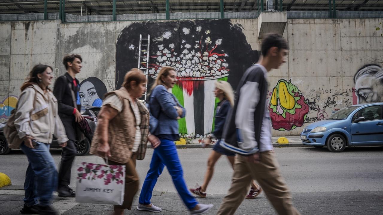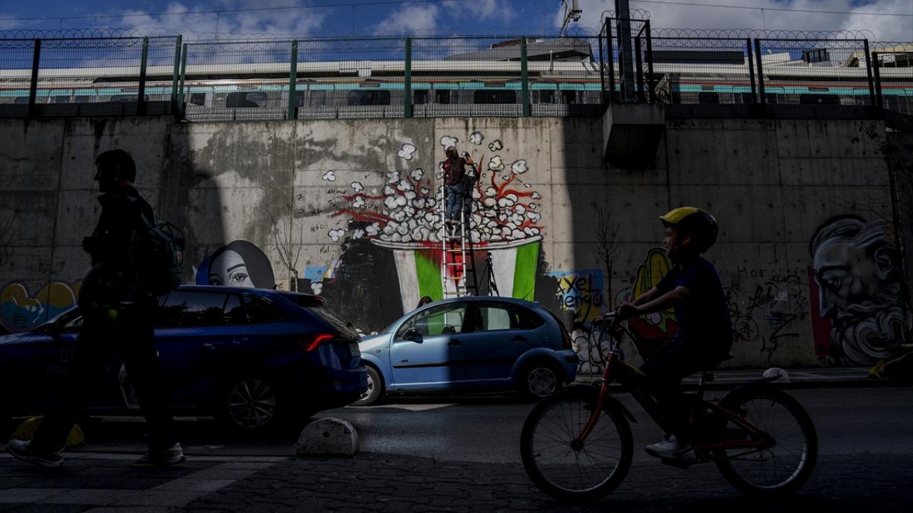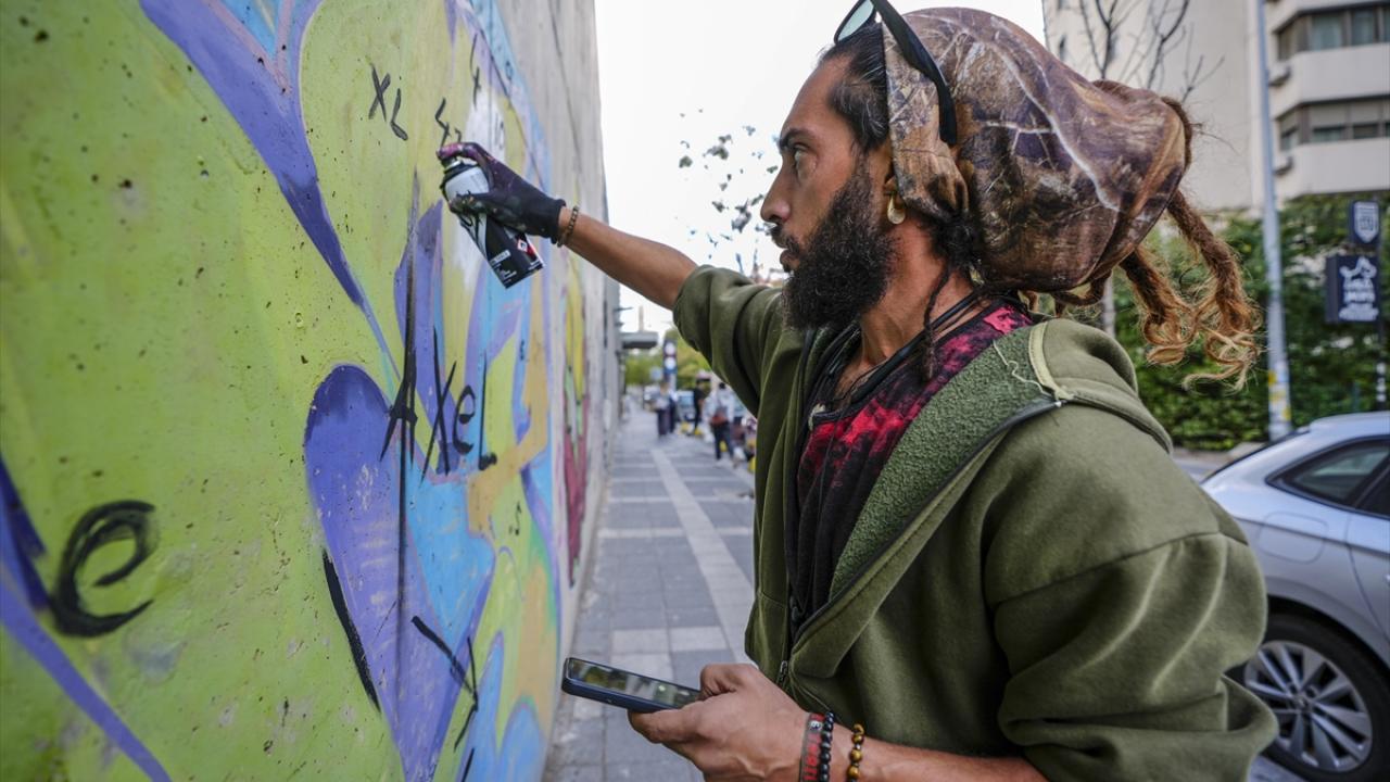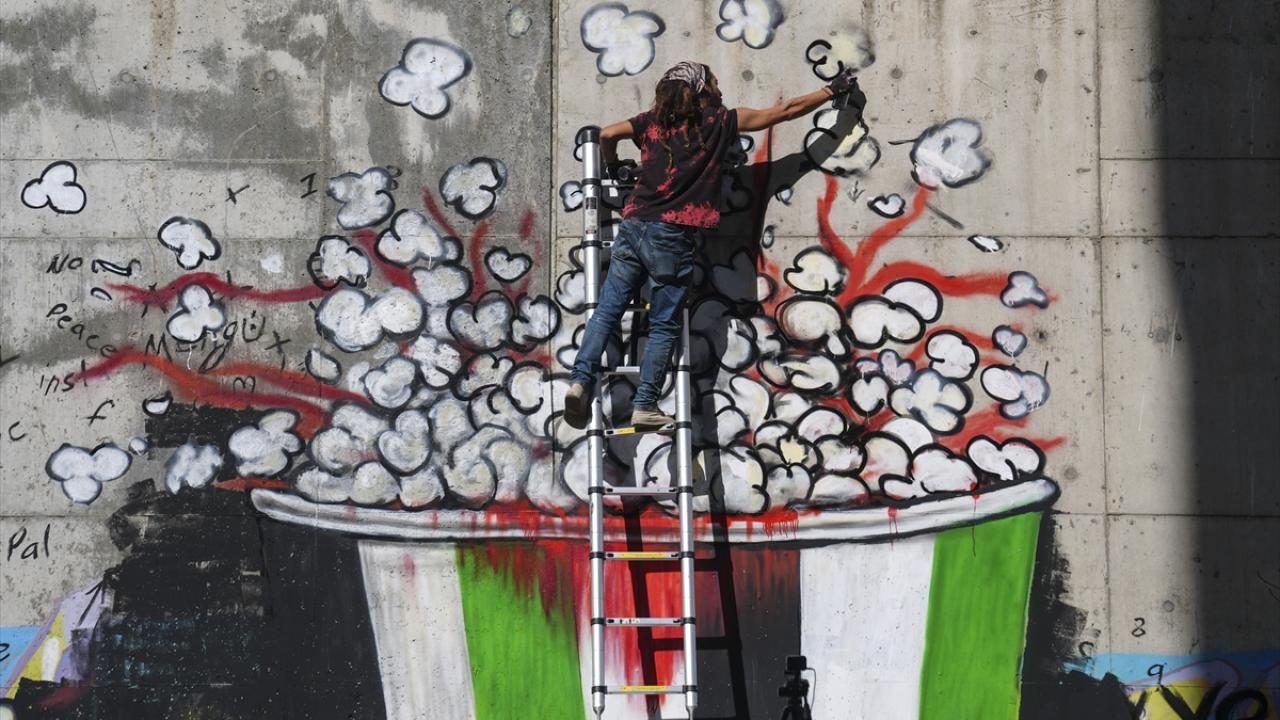 İsrail'in Gazze'deki saldırılarında çocukların, kadınların ve gazetecilerin hayatını kaybetmesine sessiz kalan dünyaya dikkati çekmek isteyen mural sanatçısı Axel Mengü, İstanbul'da "Dünya İzlerken" adlı mural çalışması yaparak, işlenen insanlık suçuna karşı sessizliği sanatın diliyle gözler önüne serdi.
