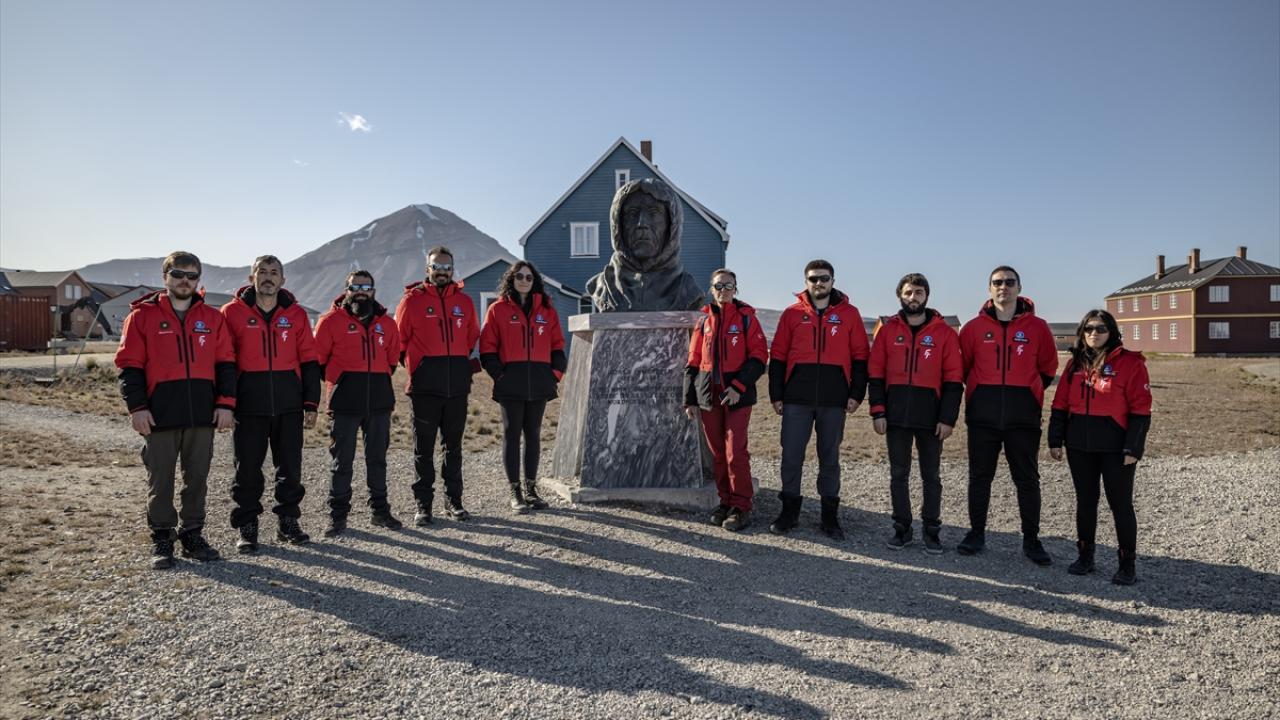 79 kuzey enleminde bulunan farklı ülkelerden 12 ayrı araştırma istasyonu bulunan bir kasaba olan Ny Alesund`da kısa süreli bir ziyaret gerçekleştiren bilim ekibi, kuzey kutup noktasına ilk, güney kutup noktasına ikinci olarak ayak basan Norveçli kaşif Ronald Amundsen`in heykeli önünde toplu fotoğraf çektirdi.