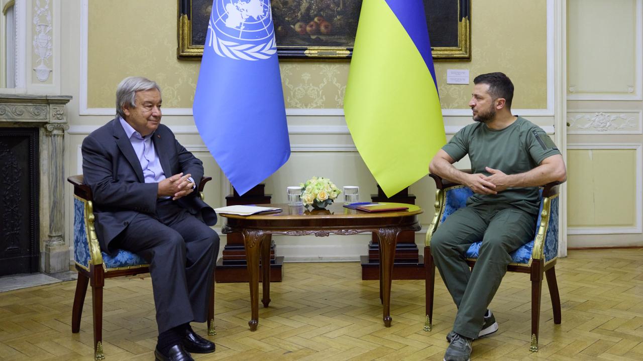 Rusya-Ukrayna savaşının başlamasından bu yana ilk kez ülkeye ziyaret gerçekleştiren Cumhurbaşkanı Erdoğan, tarihi Potocki Sarayı`nda Zelenskiy ile ikili görüşme gerçekleştirdi. Görüşmenin ardından Erdoğan, Zelenskiy ve BM Genel Sekreteri Antonio Guterres üçlü görüşmeye geçti.