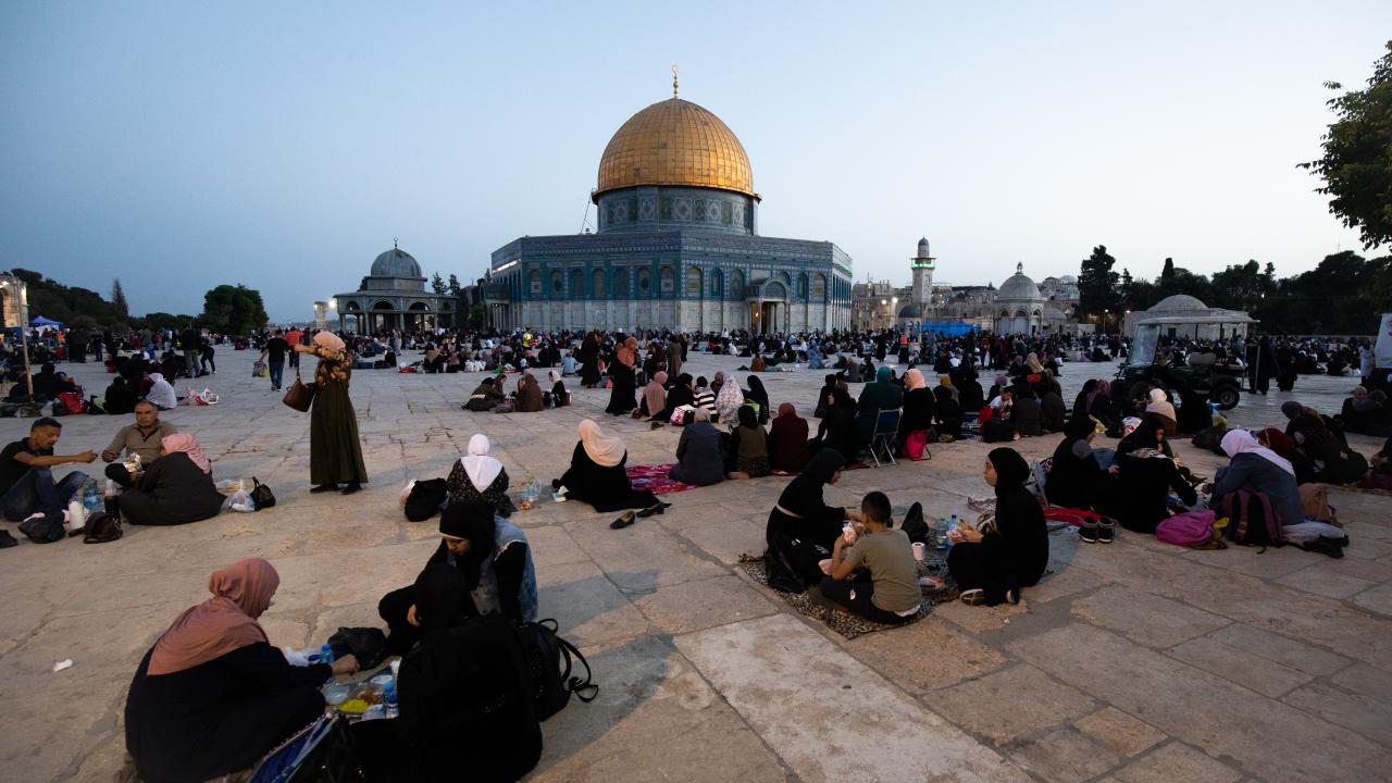Filistinliler, iftarlarını Mescid`i Aksa avlusunda açtı.