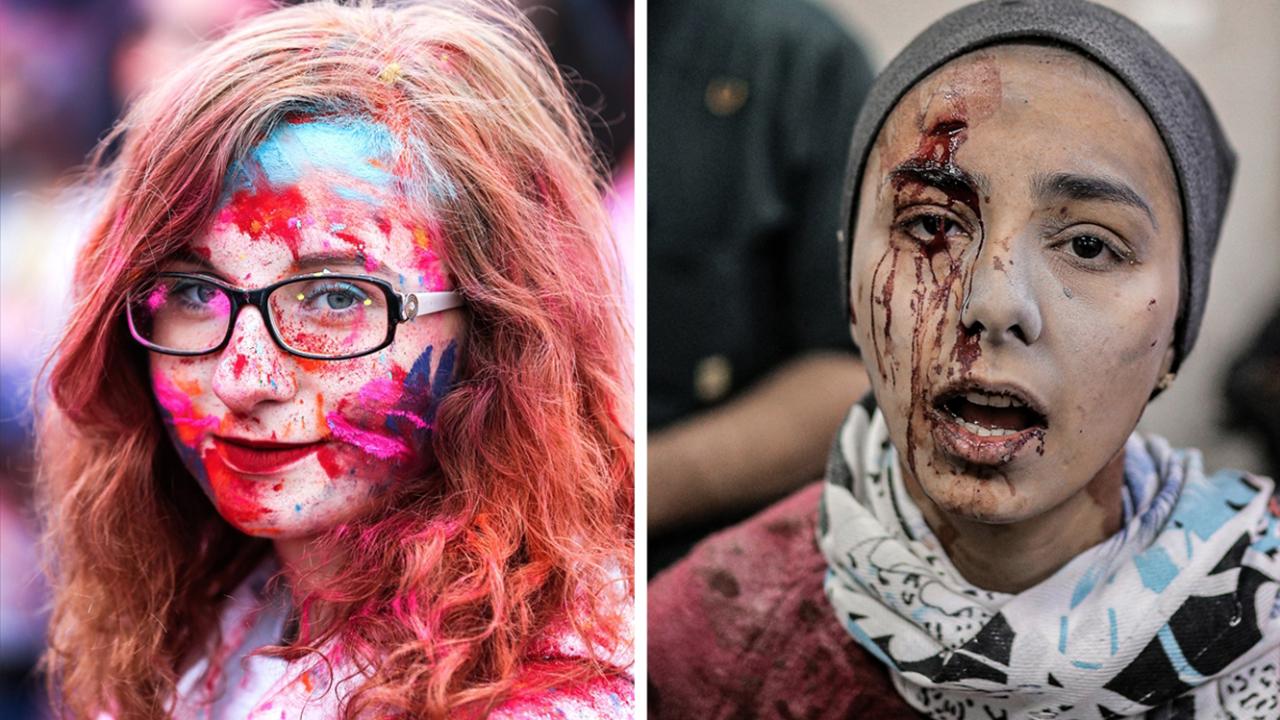 Bir tarafta festival için yüz boyayanlar; diğer tarafta İsrail`in bombardımanında yüzü kan olanlar...