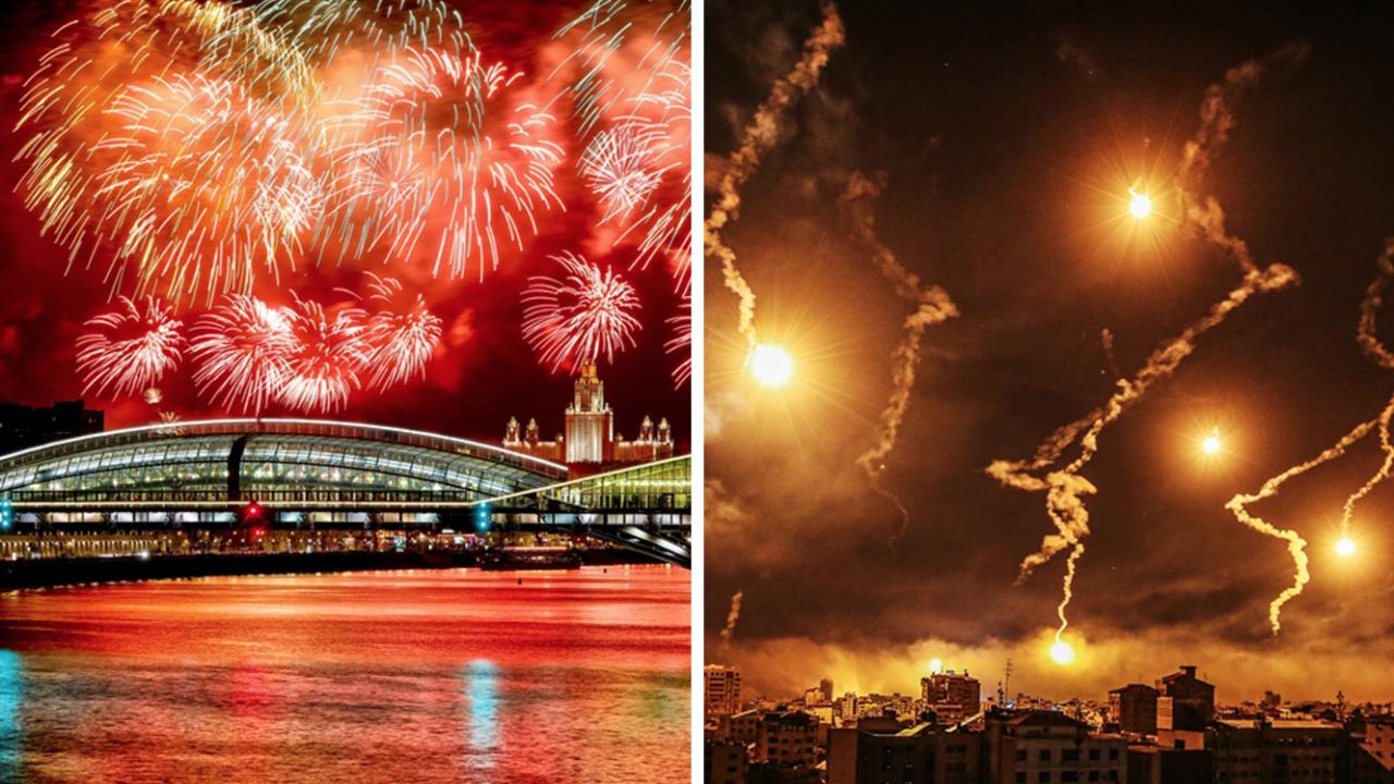 Bir tarafta yılbaşı heyecanı ve havai fişek gösterileri; diğer tarafta ise İsrail`in Gazze`ye saldırılarında kullandığı aydınlatma fişeği...