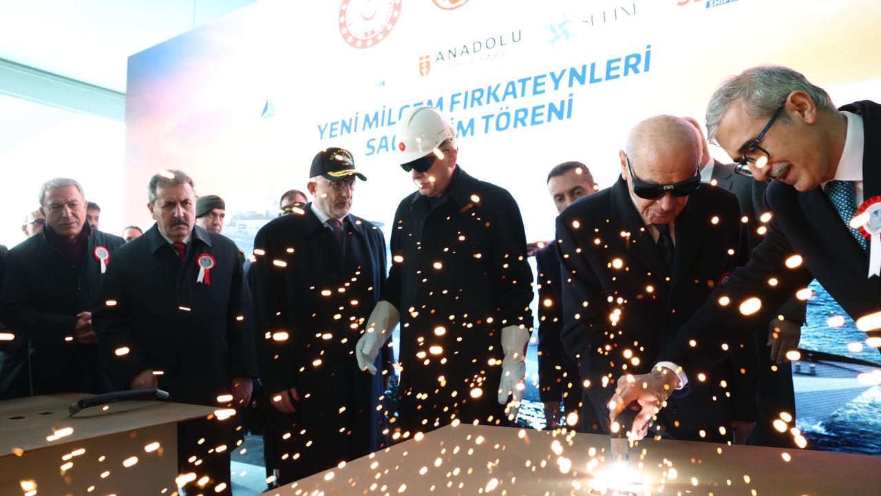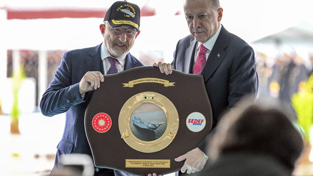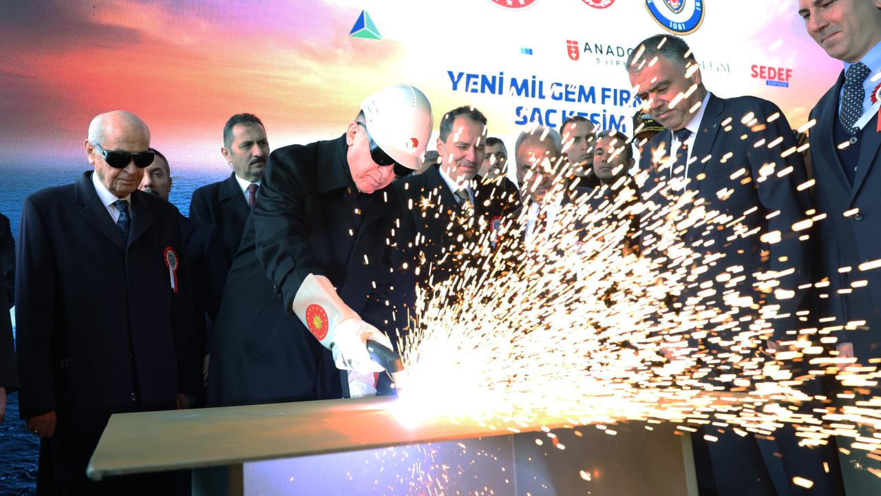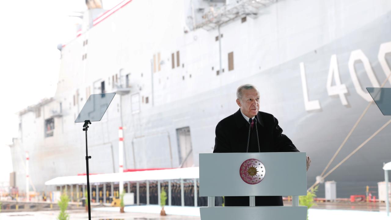 Cumhurbaşkanı Recep Tayyip Erdoğan, dünyanın ilk SİHA, Türkiye’nin en büyük savaş gemisi `TCG Anadolu`nun, Deniz Kuvvetleri Komutanlığı`na teslim töreni ile üç yeni MİLGEM fırkateyninin sac kesim törenine katıldı.