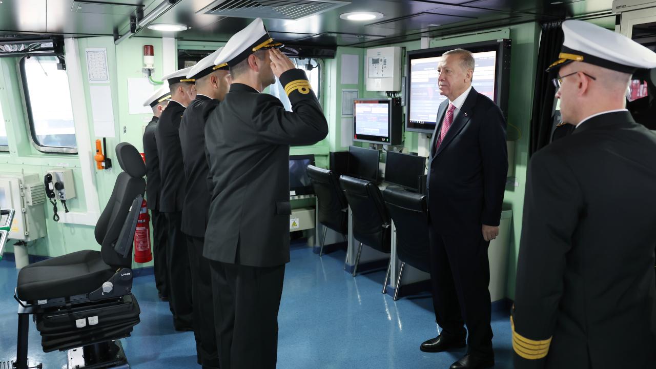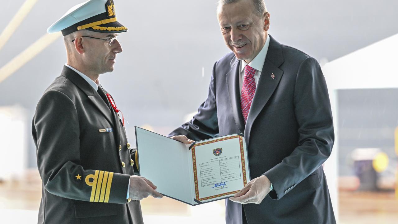 Cumhurbaşkanı Erdoğan`ın elinden hizmet giriş belgesi ve komutan flandrasını alan TCG Anadolu Komutanı Deniz Kurmay Albay Erhan Albayrak, ant içerek gemiyi teslim alıp göreve başladı.