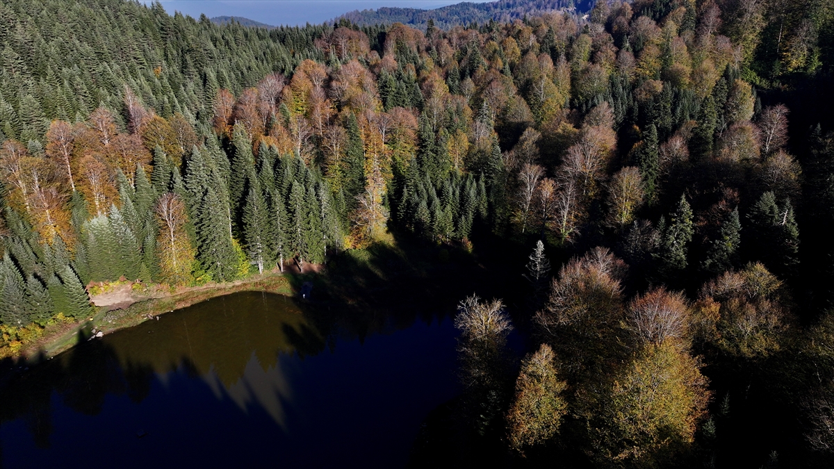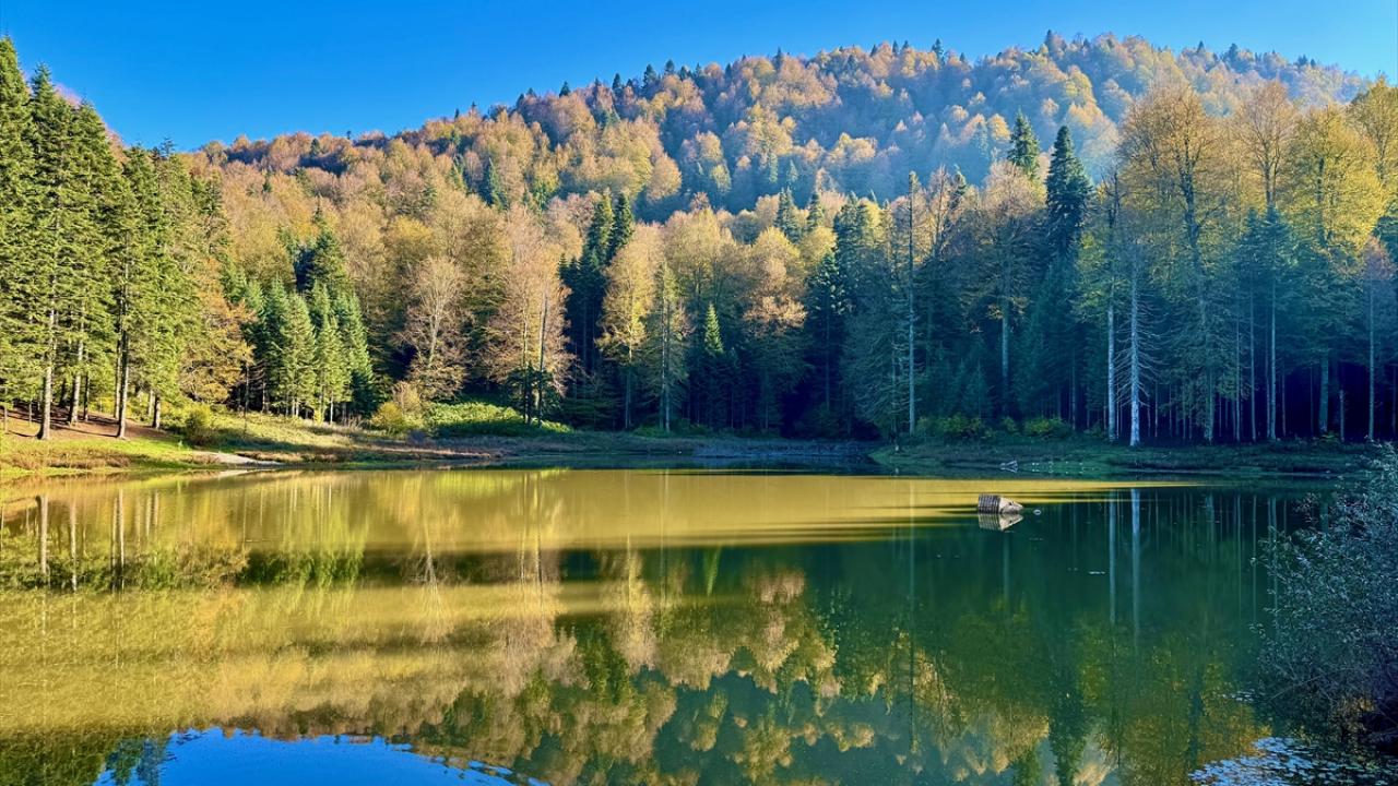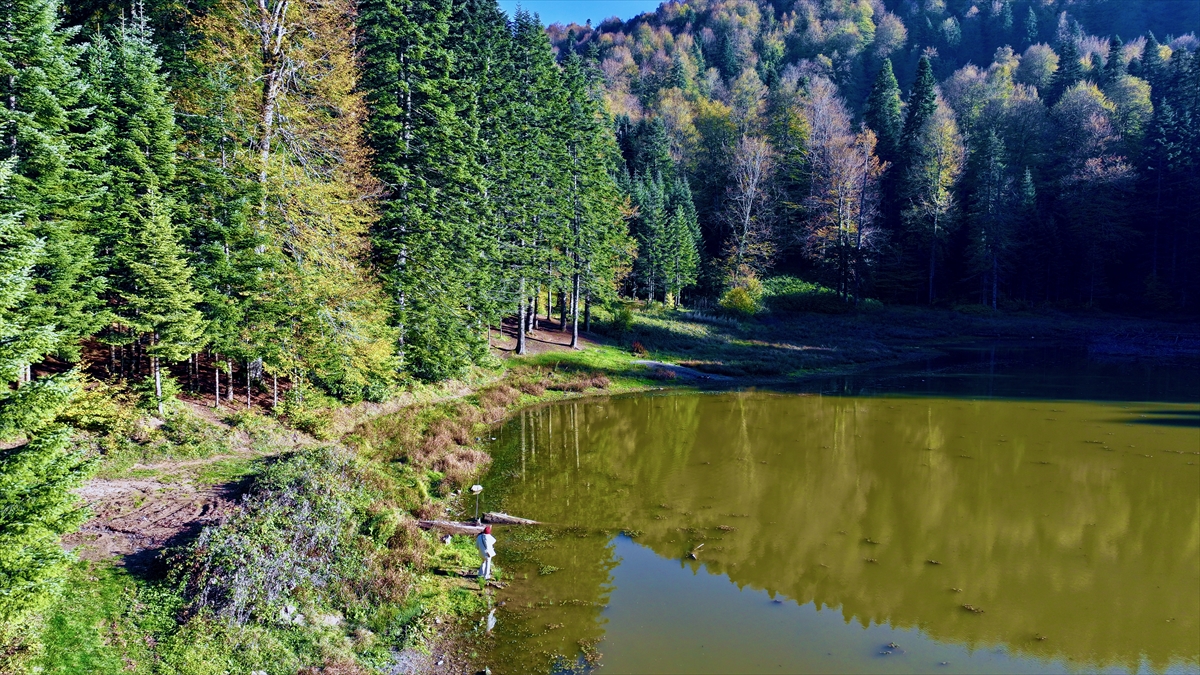 Düzce'de volkanik çöküntüyle oluşmuş Torkul Göleti'ne gelen olta balıkçıları, fotoğrafseverler ve kampçılar, hazan mevsimi manzaraları eşliğinde vakit geçiriyor. Etrafı kayın, köknar, gürgen, kestane, akçaağaç, karaçam gibi ağaçlarla çevrili volkanik çöküntüyle oluşmuş Torkul Göleti, misafirlerini sonbahar renkleriyle karşılıyor.
