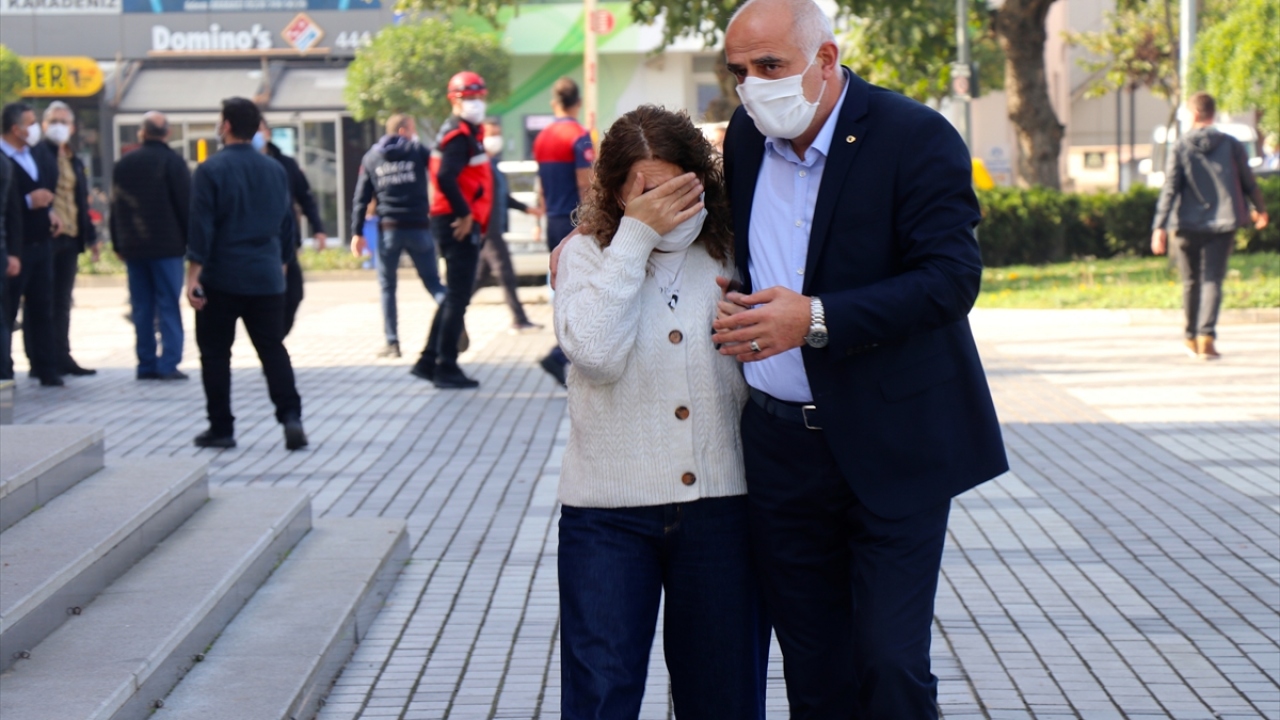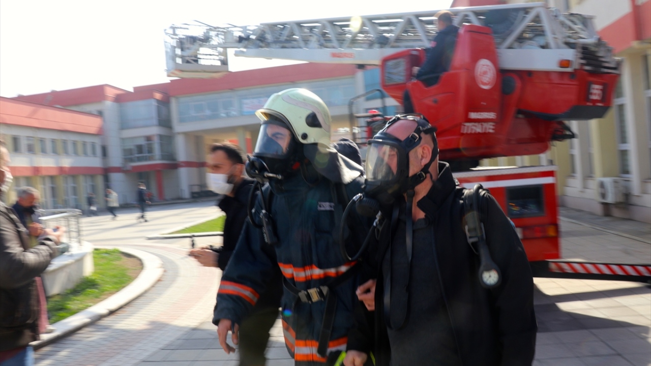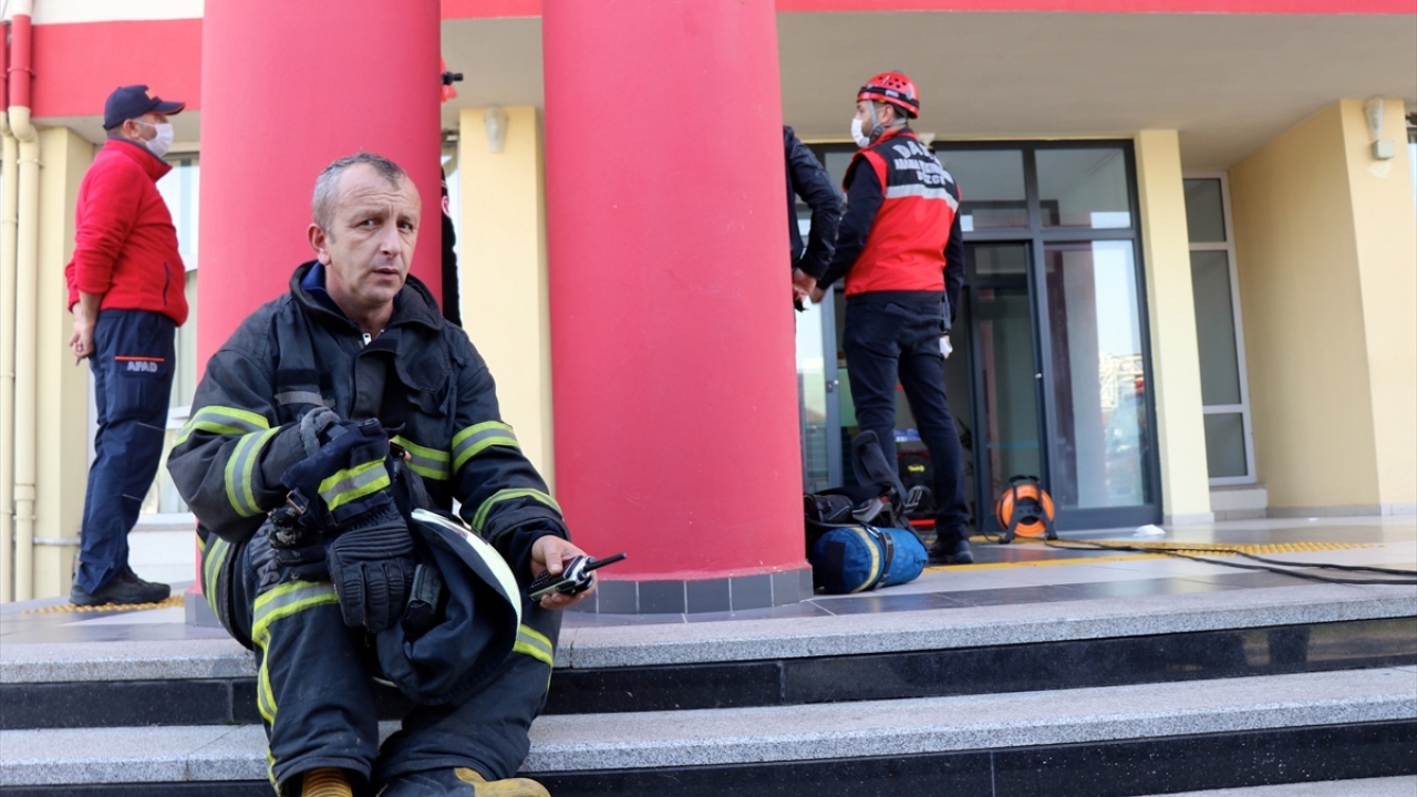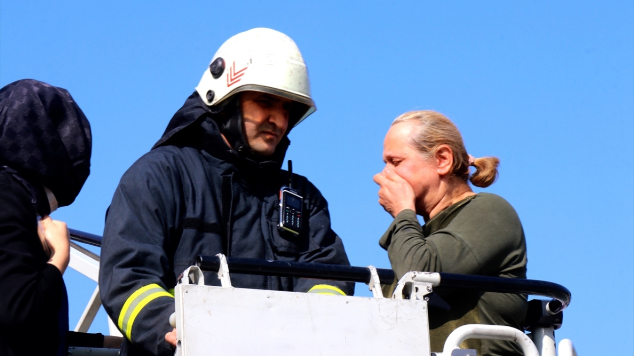 Düzce Belediyesine bağlı itfaiye ekipleri, merdivenli araç yardımıyla, gazdan etkilenen idari personeli camdan tahliye etti.