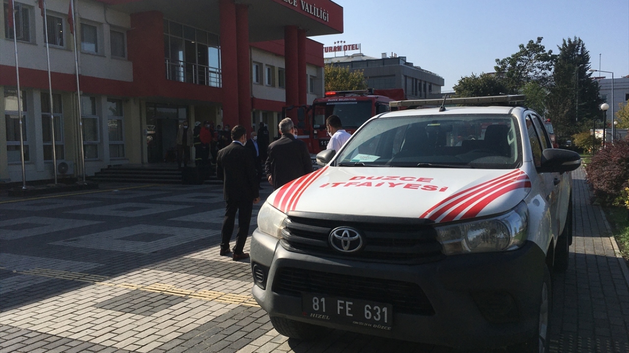Düzce Valiliğinde güvenlik noktasında patlayan biber gazından etkilenen bazı idari personel, itfaiye ekiplerince tahliye edildi.