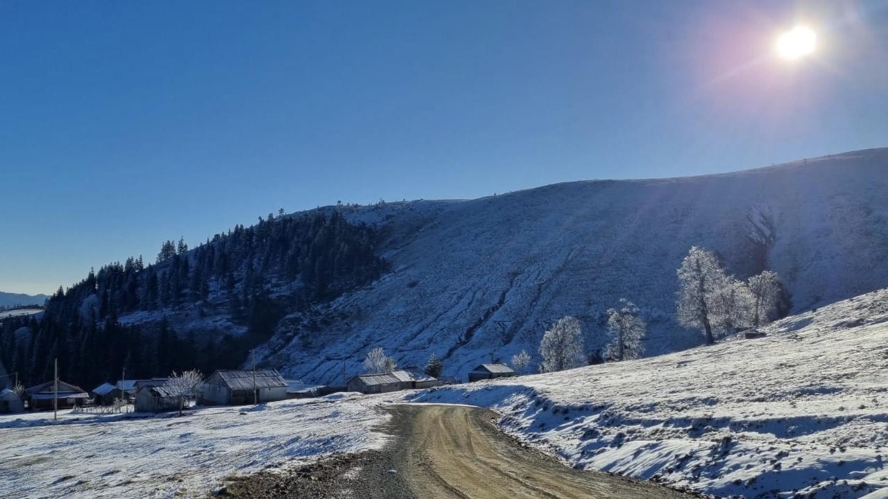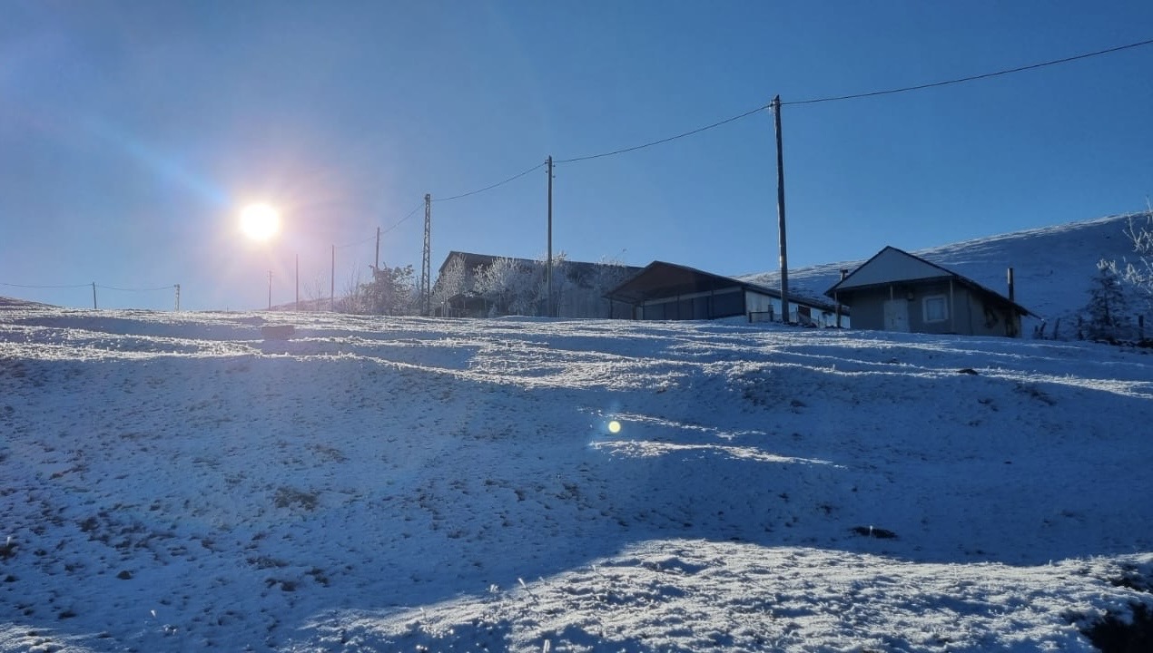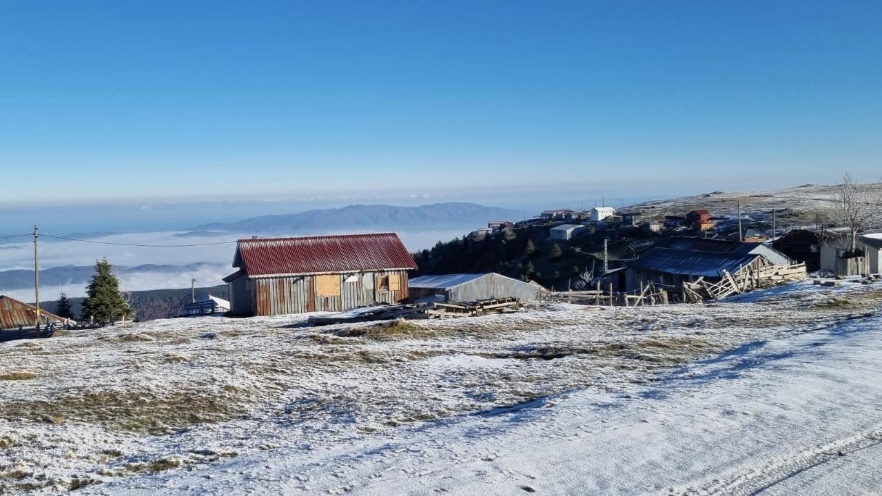 Sonbahar renklerinin hakim olduğu bölgede, kar yağışı aralıklarla devam ederken bazı alanlar beyaz örtüyle kaplandı.