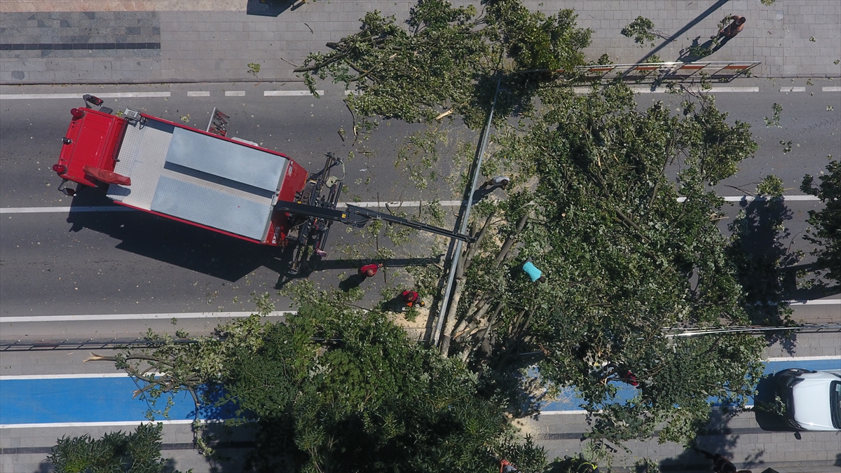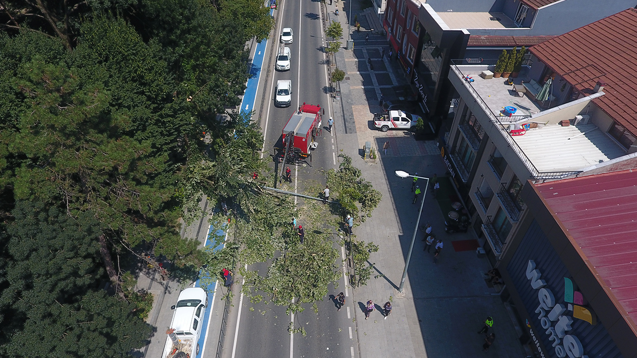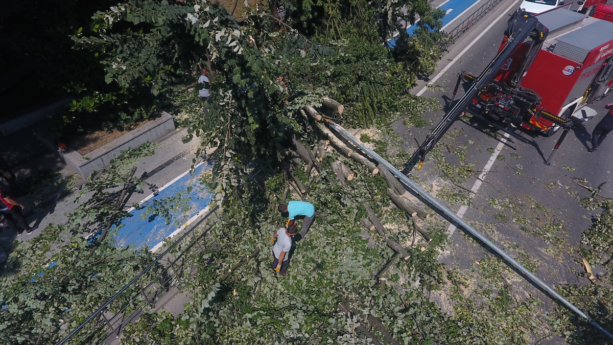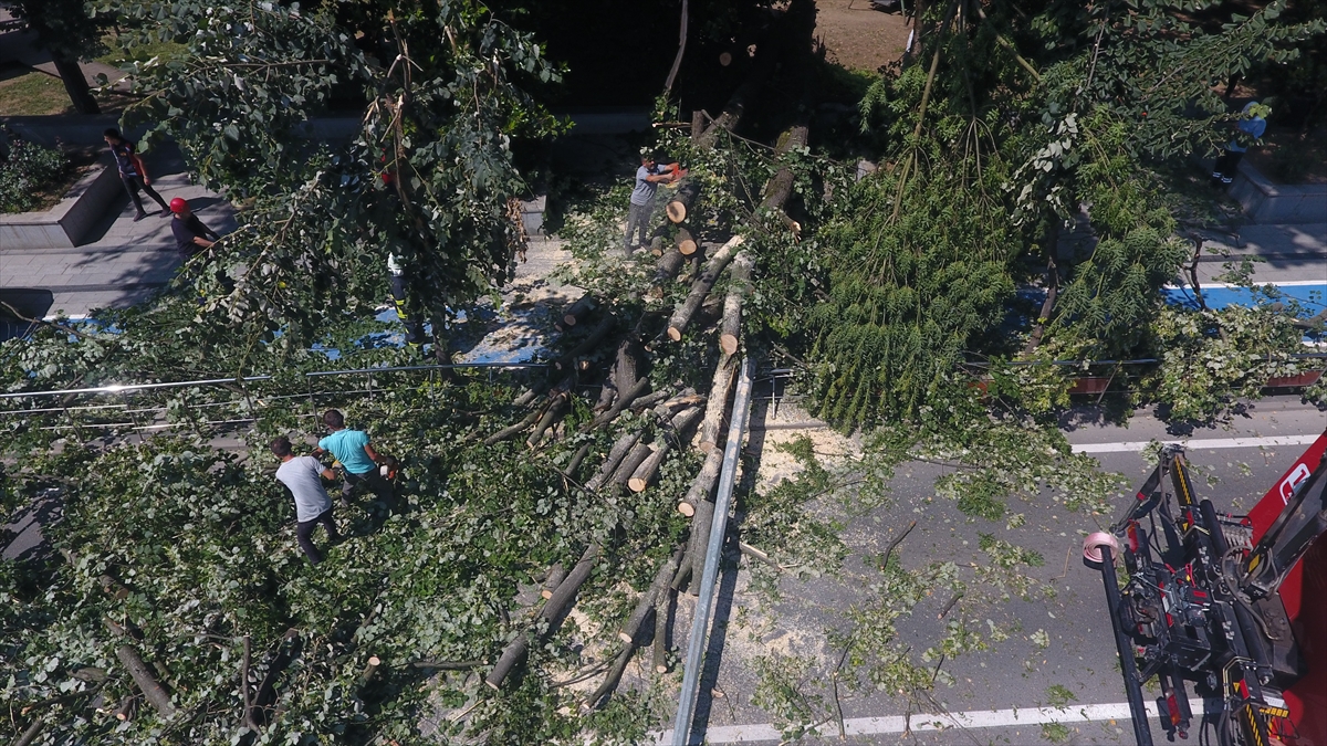 Bölgede iş yeri bulunan esnaf Tuğrul Tunç, ağacın büyük gürültüyle yola devrildiğini belirterek, "Vatandaşlar kaçışmaya başladı. Büyük panik yaşandı. Allah`a şükretmek lazım, altında kimse kalmadı." dedi.