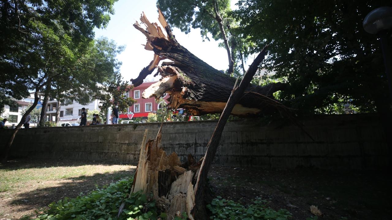 İstanbul Caddesi üzerinde bulunan Kent Park`taki yaklaşık 1 asırlık ıhlamur ağacı, bir anda caddeye devrildi.