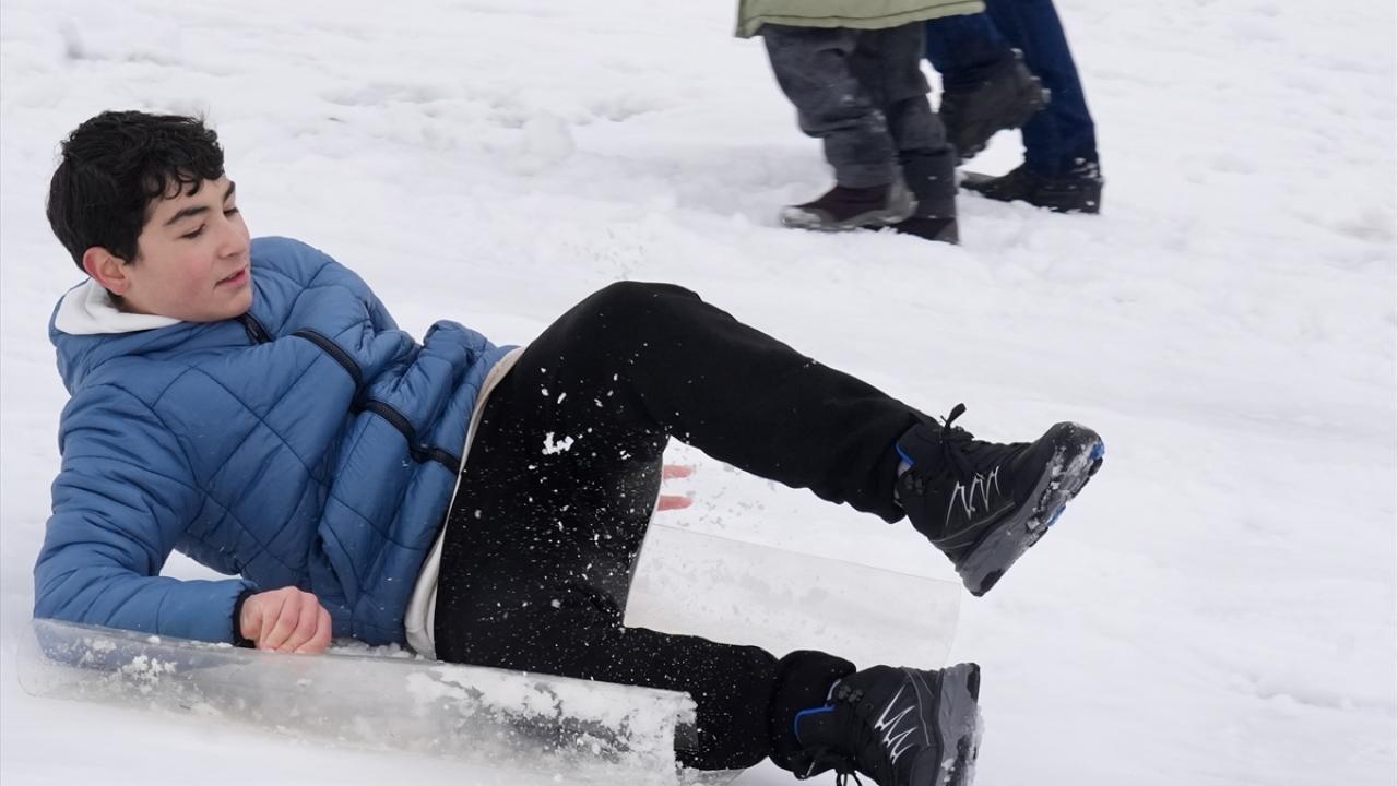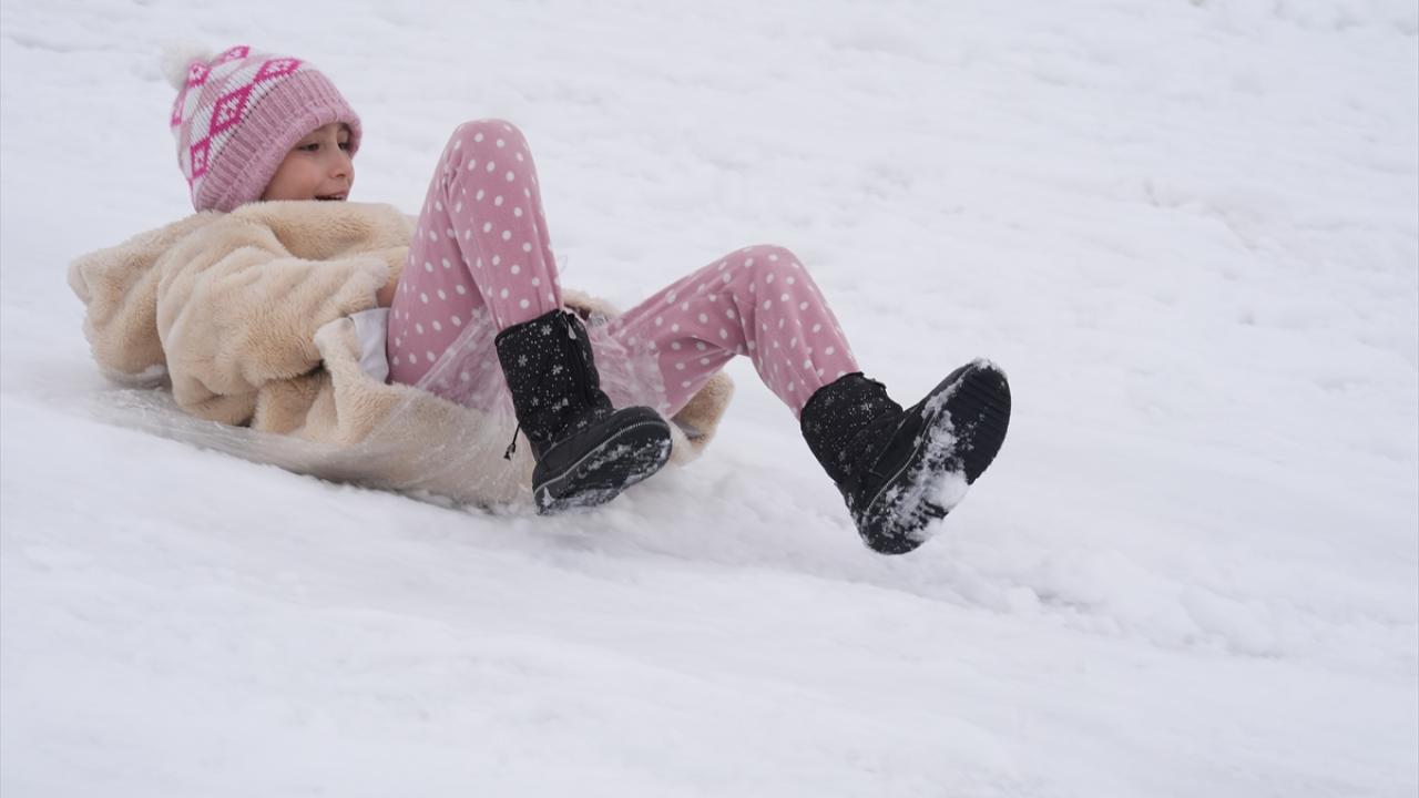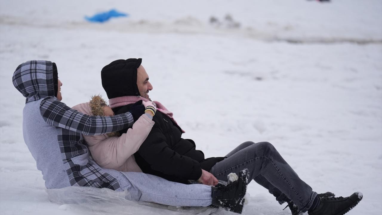 Olumsuz hava koşuları nedeniyle okulların tatil edilmesinin ardından çocuklar, aileleriyle yüksek kesimlerde biriken karlı alanlara çıktı.