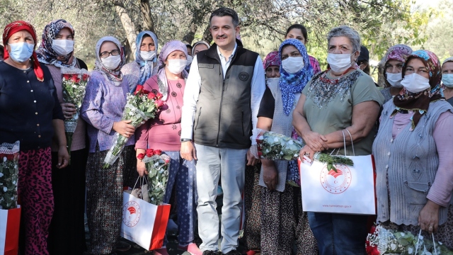 Bakan Pakdemirli kadın çiftçilerle zeytin hasadına katıldı